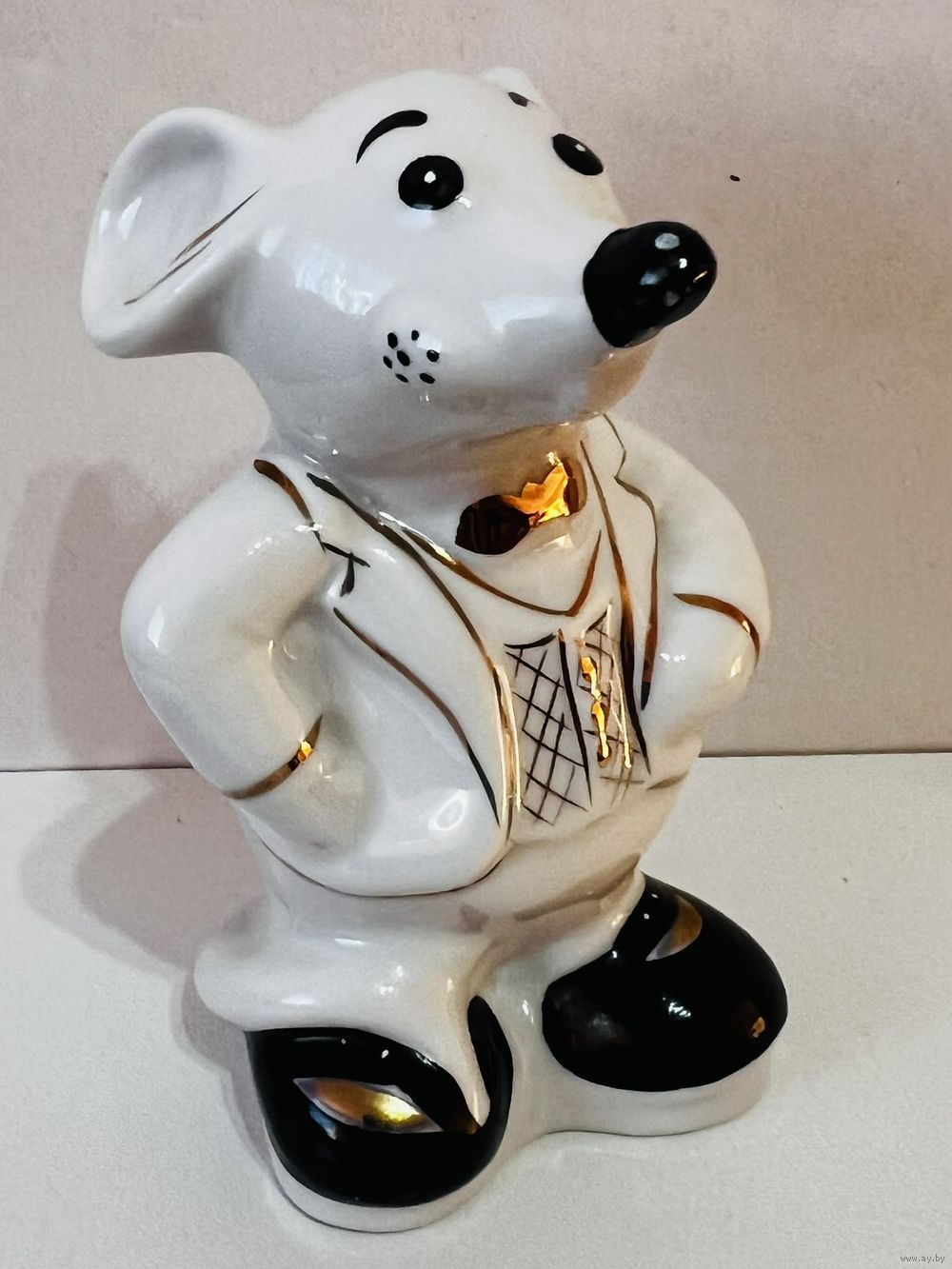 Фарфоровая статуэтка "Крыса/Мышь", высота 11 см, производство Добрушский Фарфоровый Завод (ДФЗ). Продавец не является экспертом, состояние лотов всегда оценивайте самостоятельно, по представленным фотографиям, после выигрышной ставки вы получите предмет, изображенный на фотографии. Делая ставку вы принимаете условия продажи лота, установленные продавцом. Пересылку оплачивает покупатель. Выход на связь в течение 3 дней. Оплата лотов в течение 5 дней. Отправка лотов в течение 5 дней после оплаты и предварительной договорённости.
