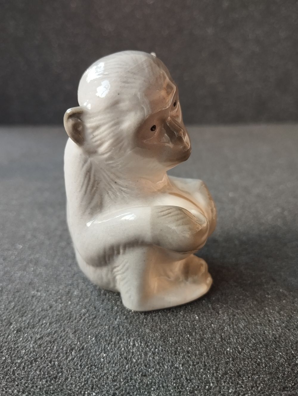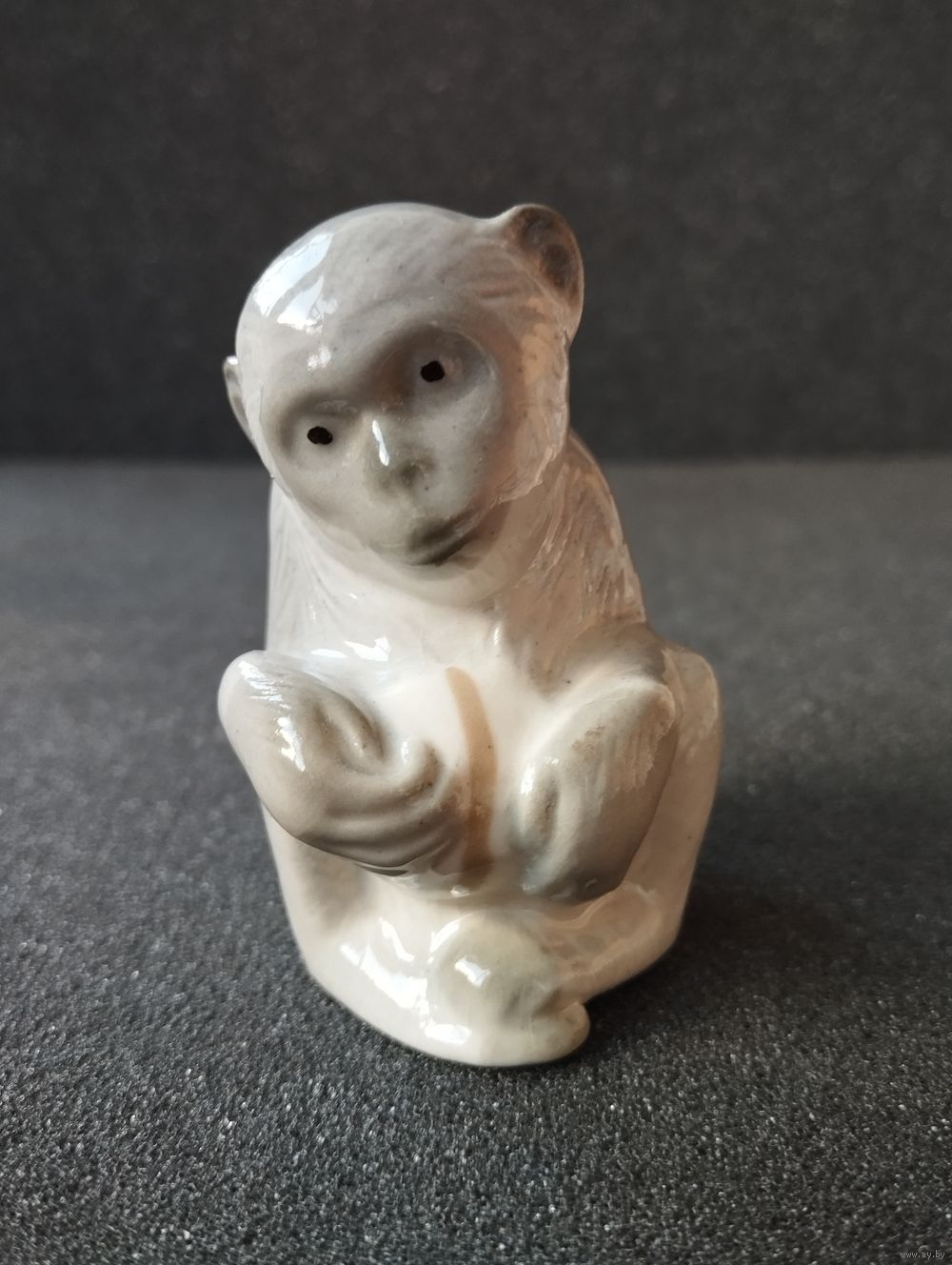Статуэтка фарфоровая серая Обезьянка, ЛФЗ. СССР