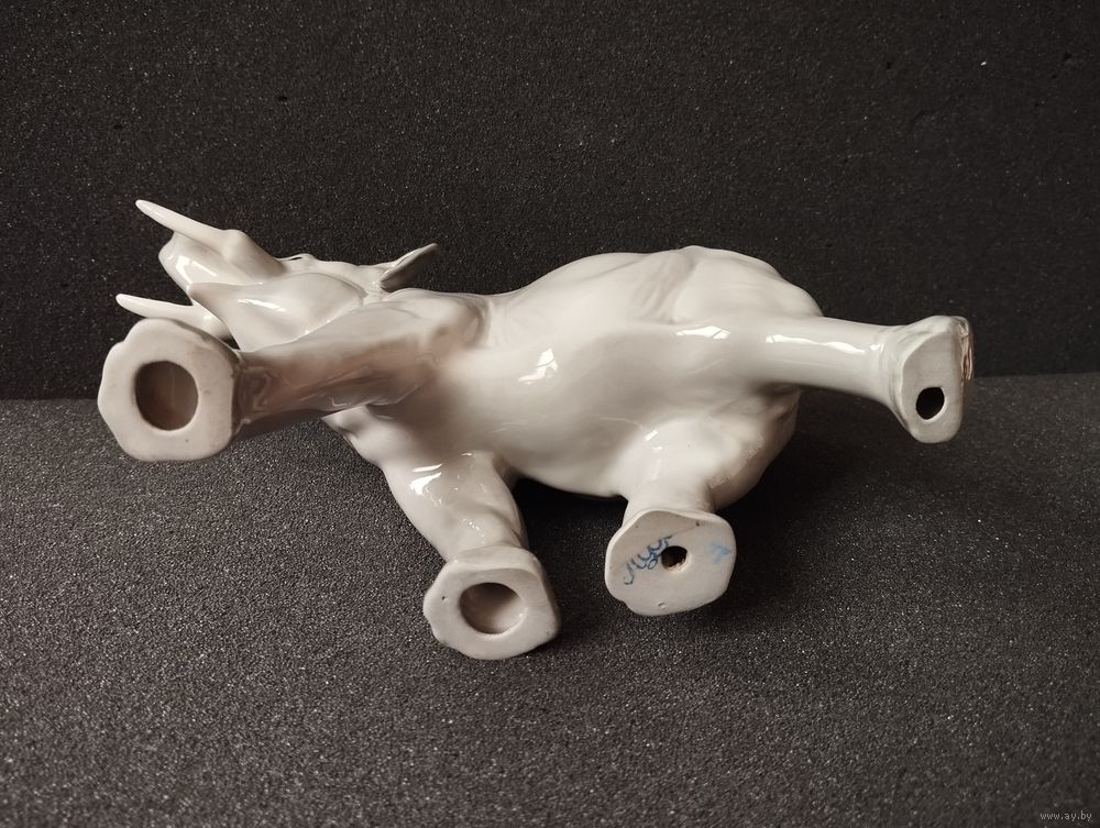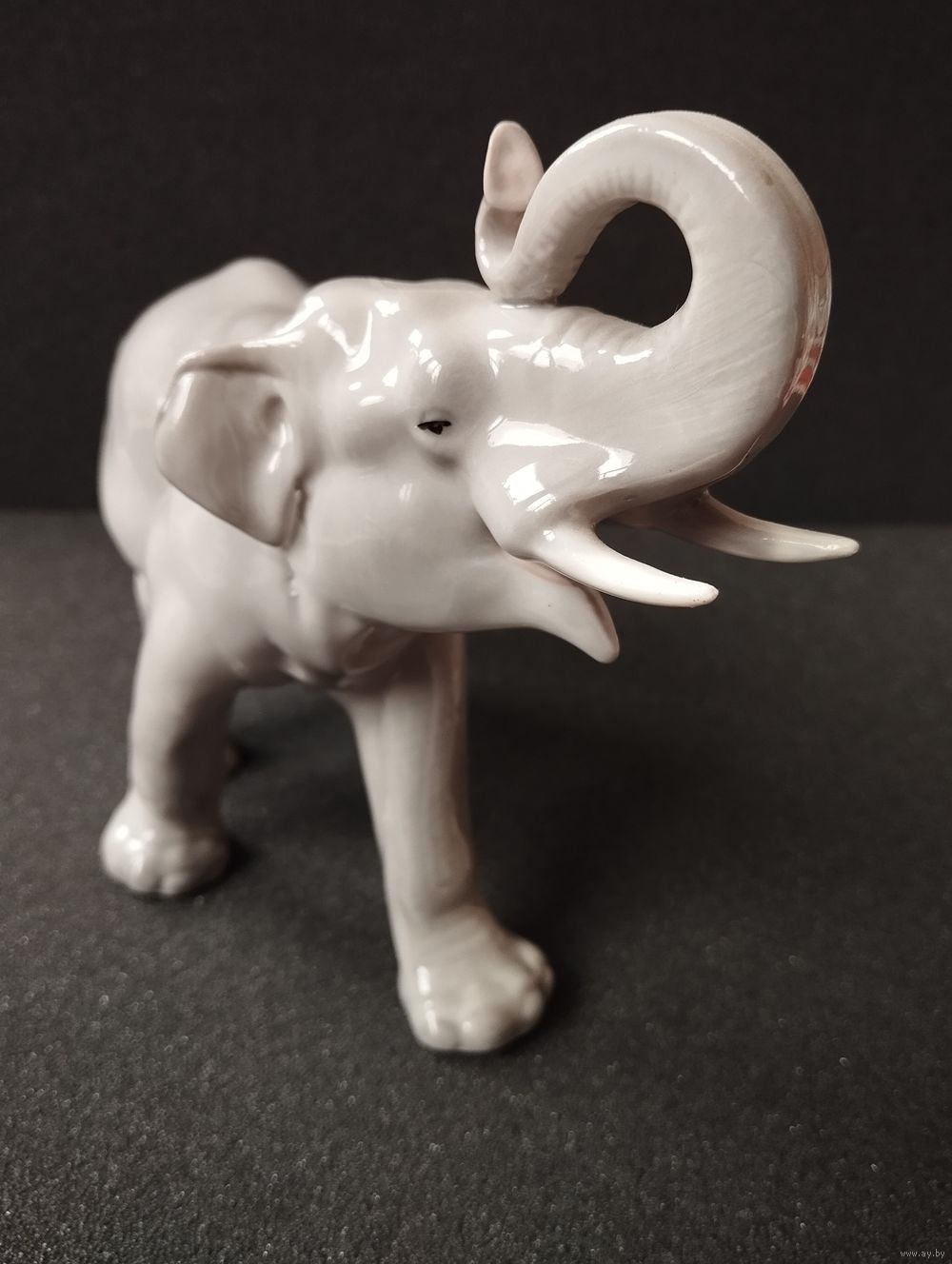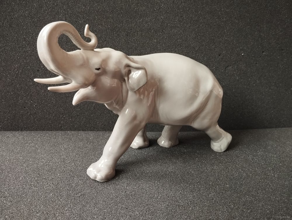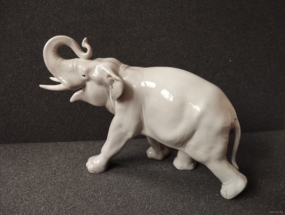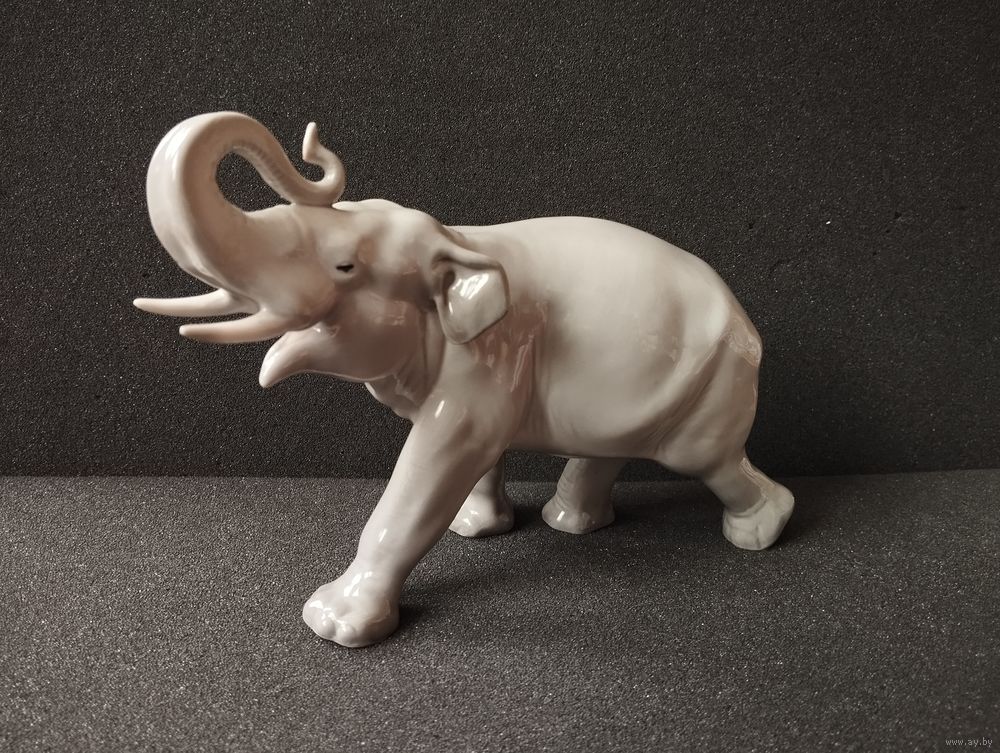 Статуэтка фарфоровая серый Слон, высота 14 см. ЛФЗ, СССР