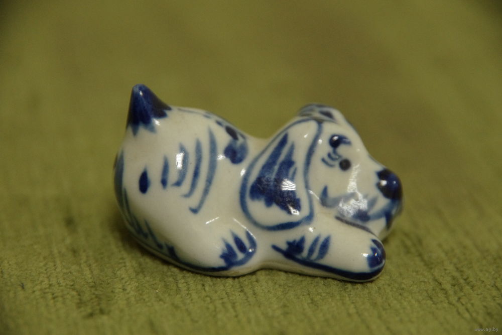 Статуэтка фарфоровая " Собачка " длинна 5 см, высота 3 см ( целая )