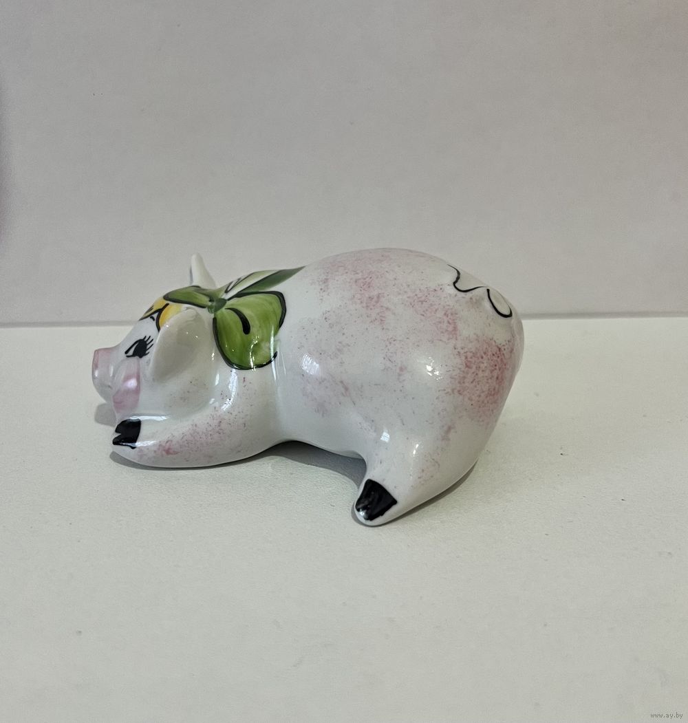 Статуэтка "Свинья", высота 2,5 см, производство Добрушский Фарфоровый Завод (ДФЗ). Продавец не является экспертом, после выигрышной ставки вы получите предмет, изображенный на фотографии. Делая ставку вы принимаете условия продажи лота, установленные продавцом. Пересылку оплачивает покупатель. Выход на связь в течение 3 дней. Оплата лотов в течение 5 дней. Отправка лотов в течение 5 дней после оплаты и предварительной договорённости.