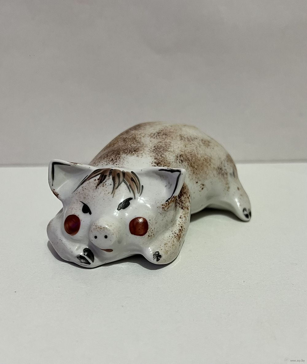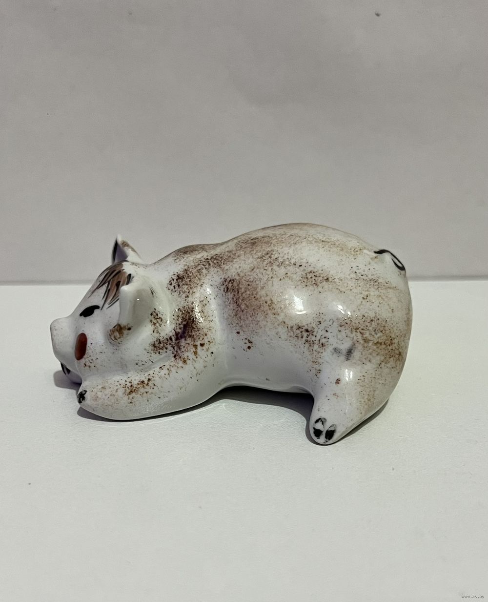 Статуэтка "Свинья", высота 2,5 см, производство Добрушский Фарфоровый Завод (ДФЗ). Продавец не является экспертом, после выигрышной ставки вы получите предмет, изображенный на фотографии. Делая ставку вы принимаете условия продажи лота, установленные продавцом. Пересылку оплачивает покупатель. Выход на связь в течение 3 дней. Оплата лотов в течение 5 дней. Отправка лотов в течение 5 дней после оплаты и предварительной договорённости.