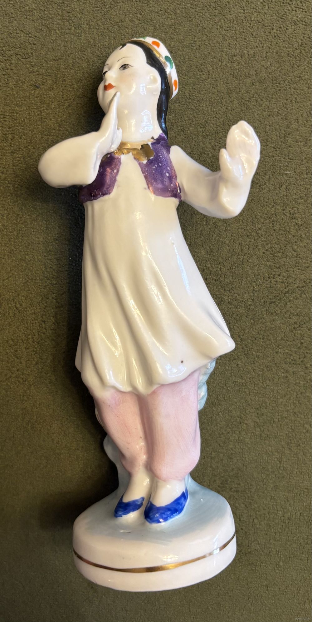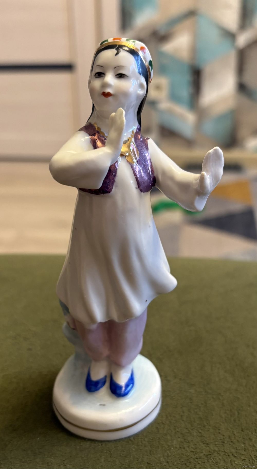 Статуэтка Фарфоровая Танцующая узбечка . Дулёво . Высота 15 см .