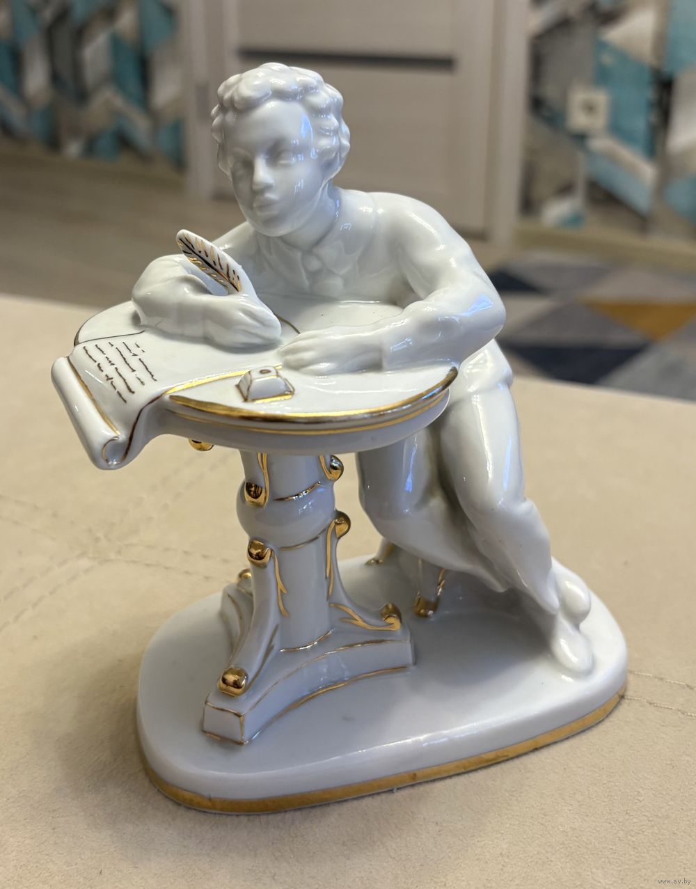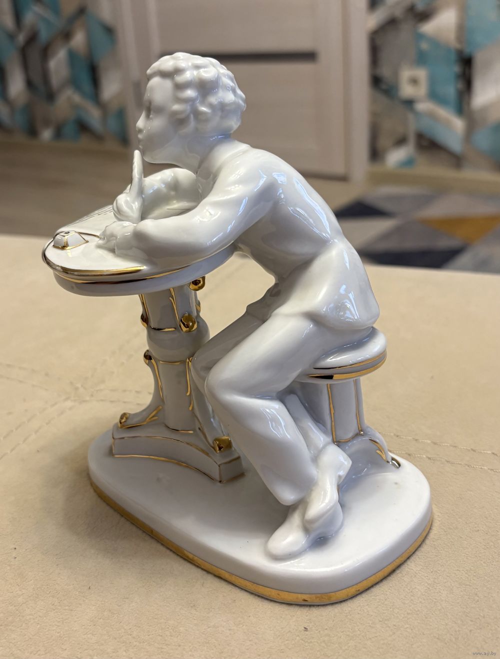 Статуэтка Фарфоровая Юный Пушкин . ЛФЗ . Высота 16 см .