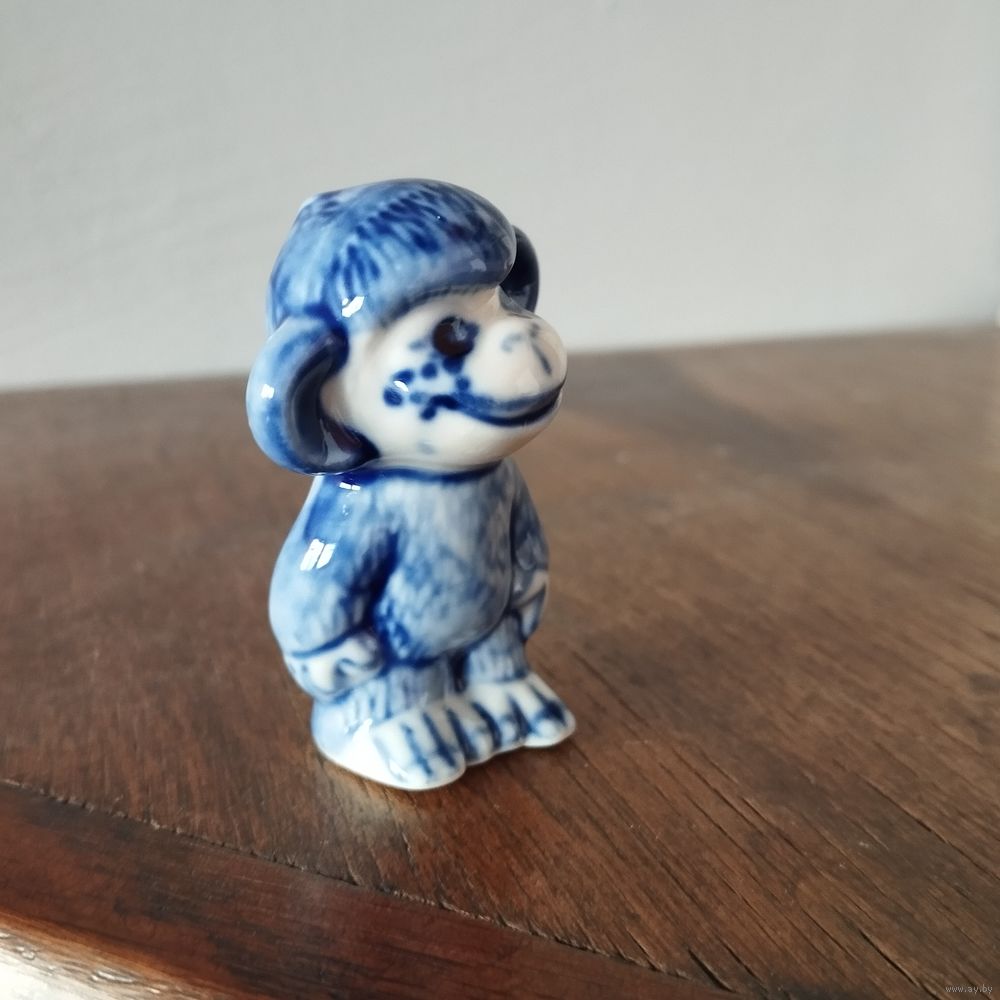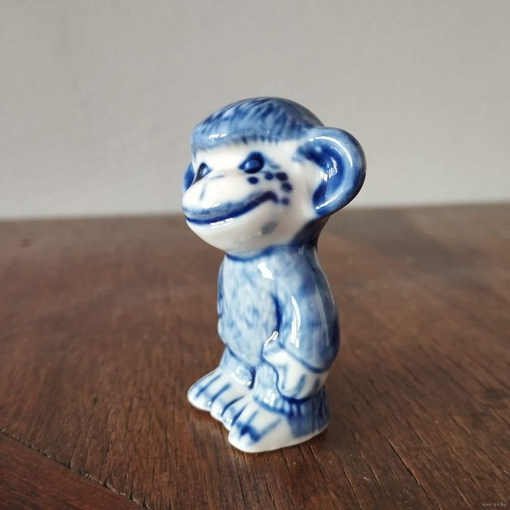 Статуэтка фарфоровая забавная Макака (обезьяна), Гжель