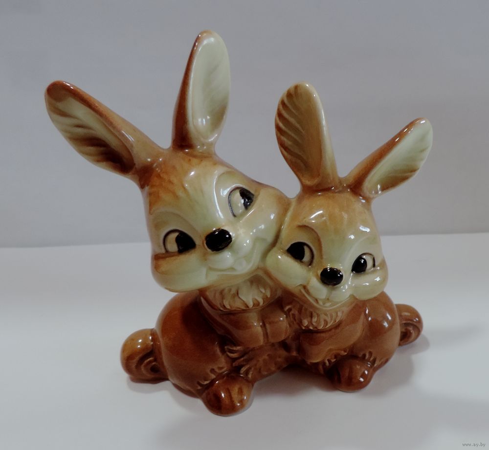 Статуэтка фарфоровая "Зайцы" 70-е годы фирма GOEBEL, Германия. Высота 8.7 см. Целая, без реставрации.