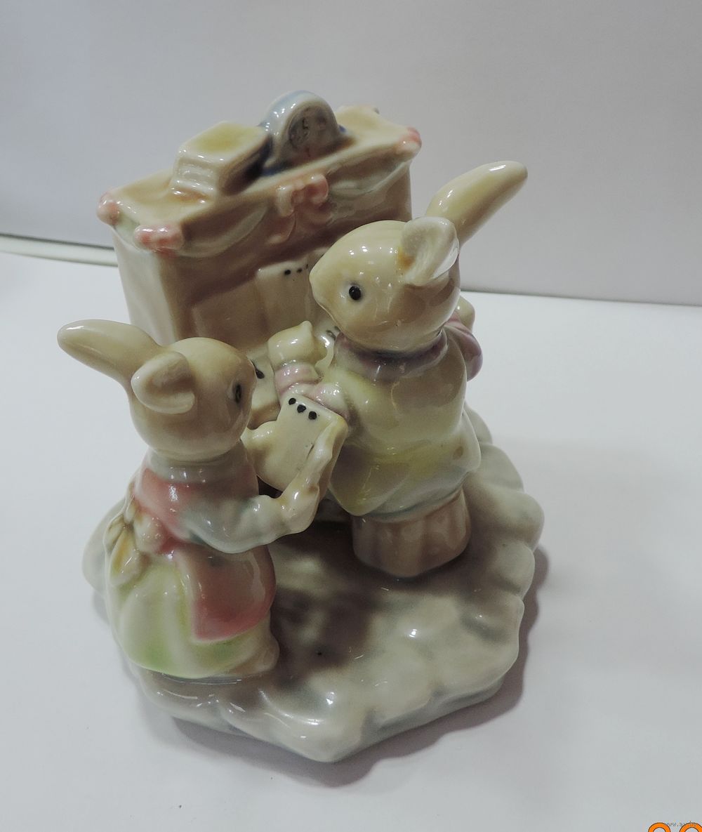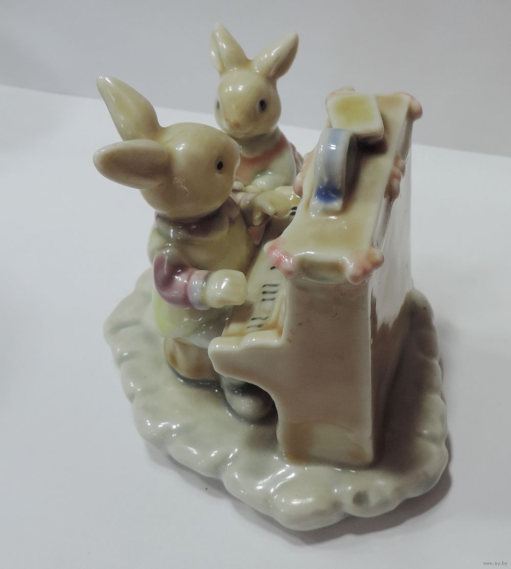 Статуэтка фарфоровая "Зайцы на пианино" 70-80-е годы Европа. Высота 8.5 см.
