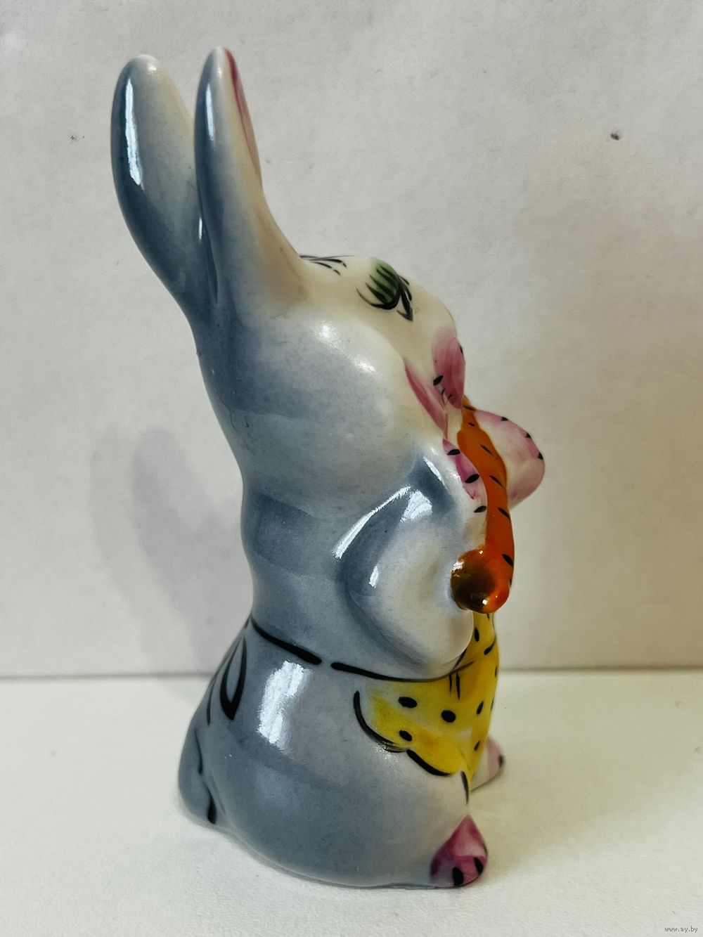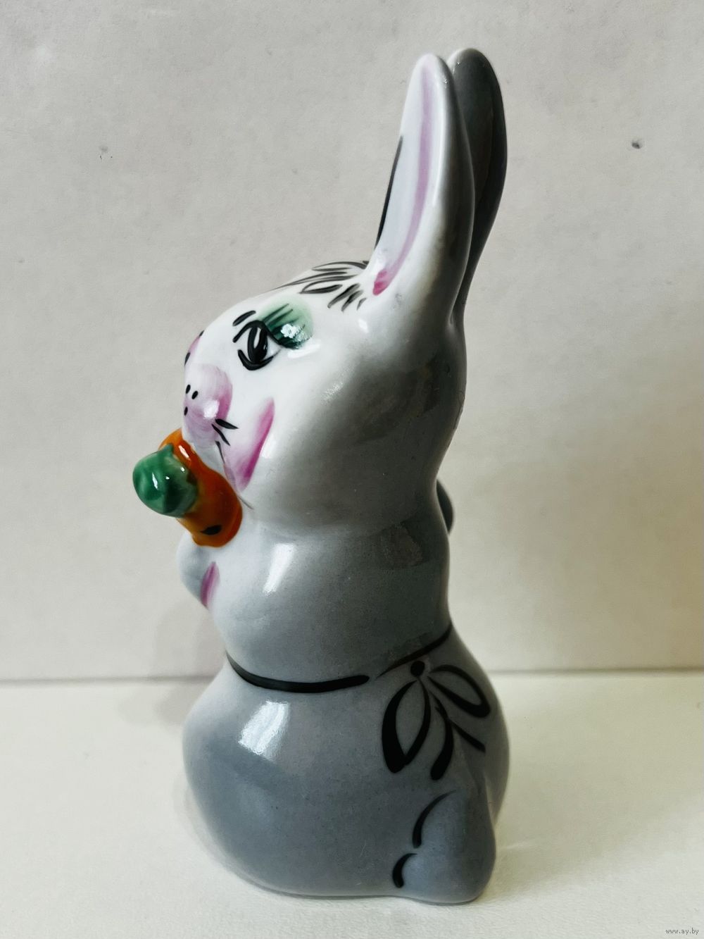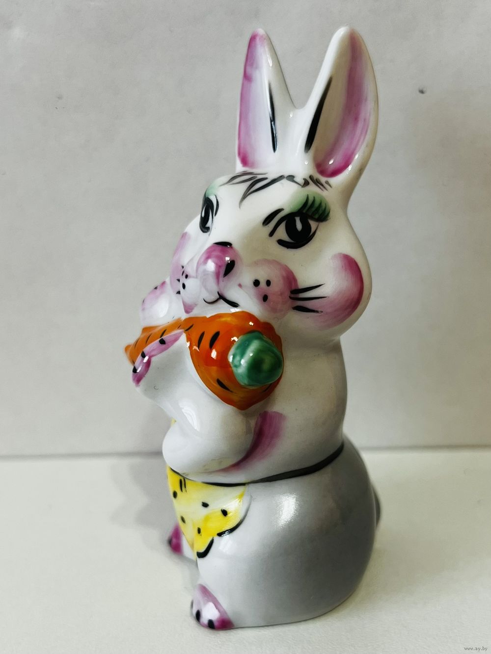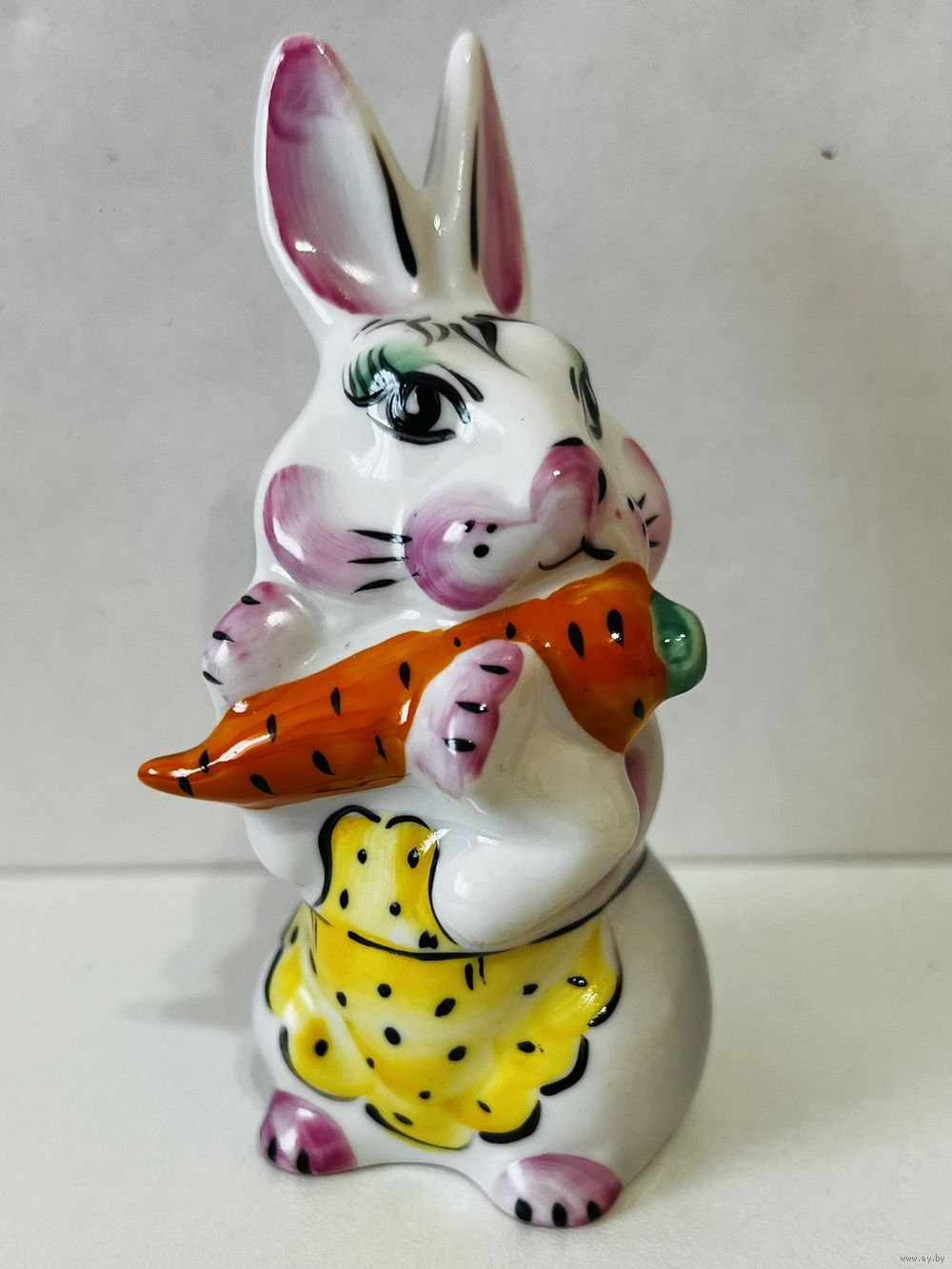 Фарфоровая статуэтка "Заяц с морковкой", высота 10 см, производство Добрушский Фарфоровый Завод (ДФЗ). Продавец не является экспертом, состояние лотов всегда оценивайте самостоятельно, по представленным фотографиям, после выигрышной ставки вы получите предмет, изображенный на фотографии. Делая ставку вы принимаете условия продажи лота, установленные продавцом. Пересылку оплачивает покупатель. Выход на связь в течение 3 дней. Оплата лотов в течение 5 дней. Отправка лотов в течение 5 дней после оплаты и предварительной договорённости.