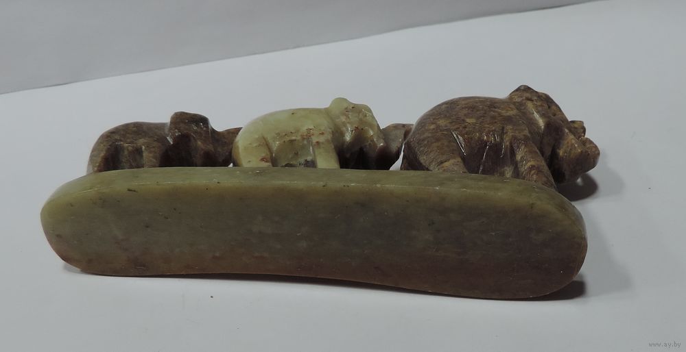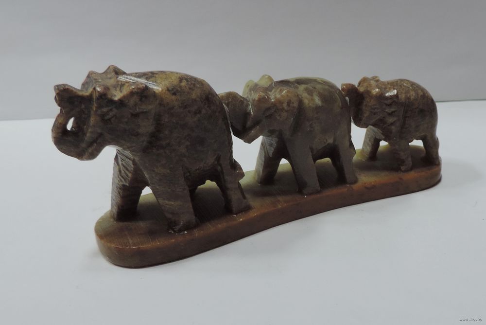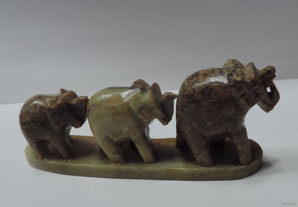 Статуэтка из камня "Слоны" 70-е годы Европа. Высота 4.8 см. Длина 11 см.