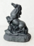 Высота около 15 см. Подставка из цельного шунгита, а фигурка из прессованной шунгитовой крошки.