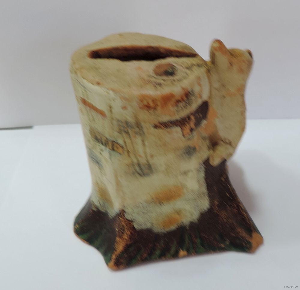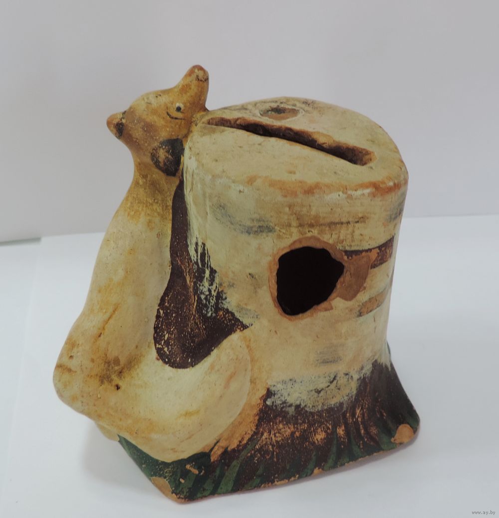 Статуэтка - копилка "Лиса около пня" 30-е годы. Высота 9 см. Керамика.
