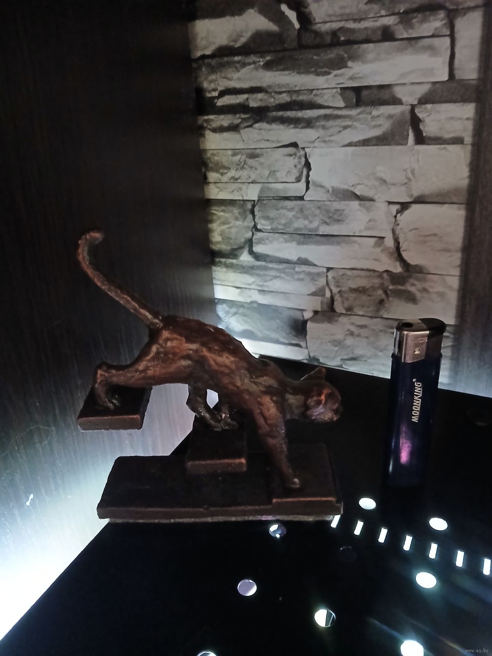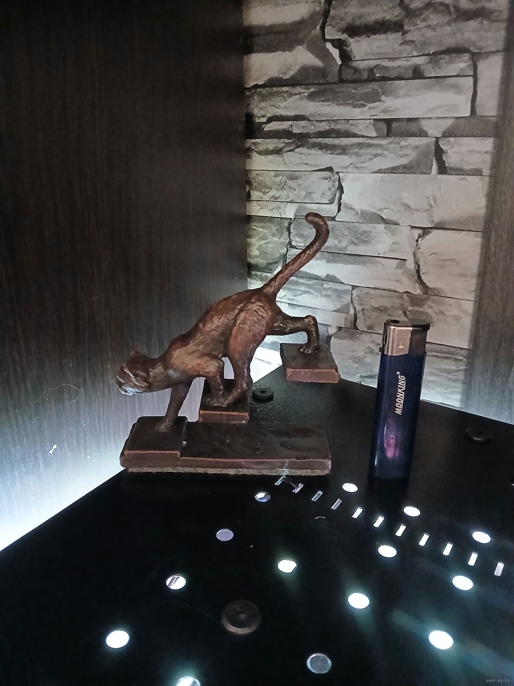 Статуэтка кот на лестнице. Металл литье. Вес 200гр. Размер 100х30х130