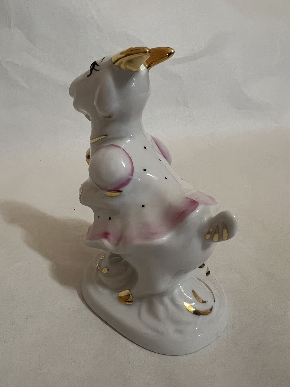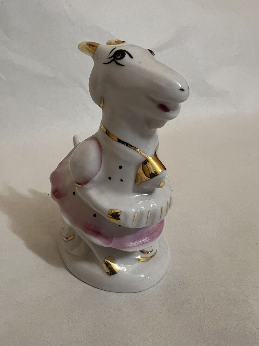 Фарфоровая статуэтка "Коза", высота 10 см, производство Добрушский Фарфоровый Завод (ДФЗ). Продавец не является экспертом, после выигрышной ставки вы получите предмет, изображенный на фотографии. Делая ставку вы принимаете условия продажи лота, установленные продавцом. Пересылку оплачивает покупатель.