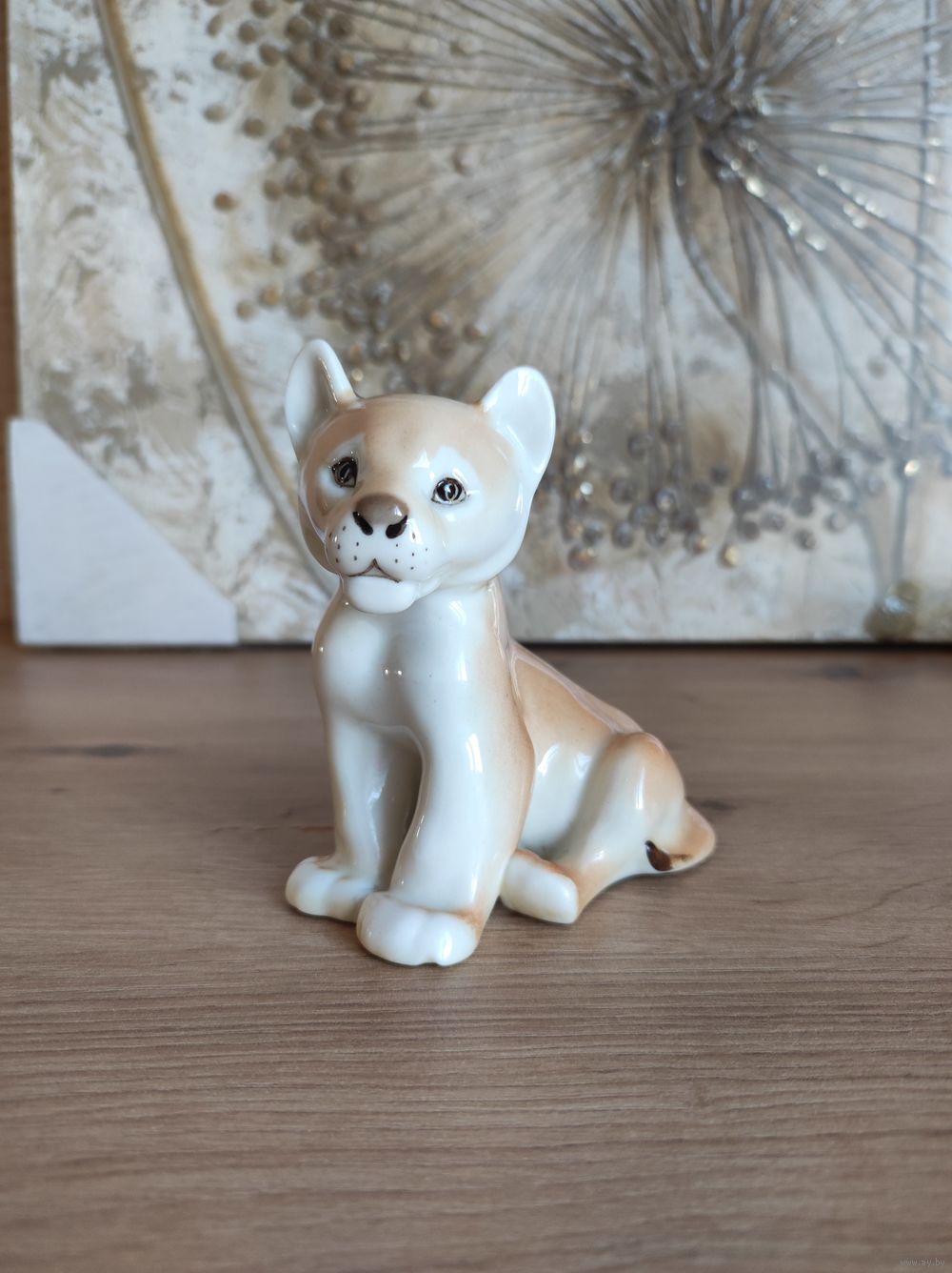 9.5 см, состояние хорошее, но имеется маленький скол на лапе.
