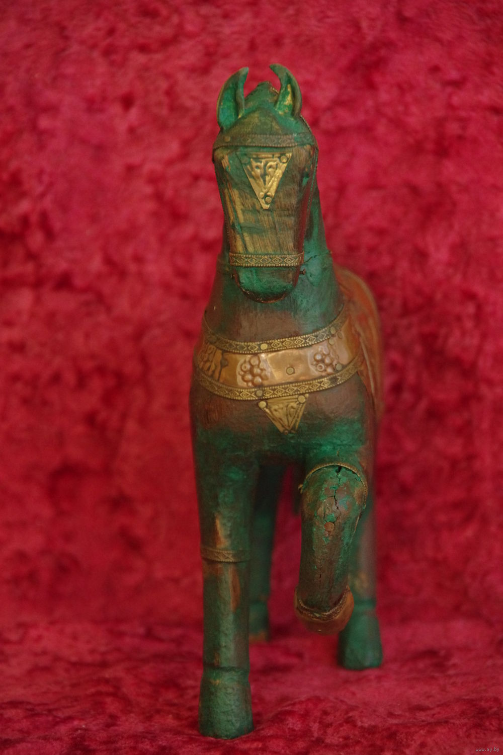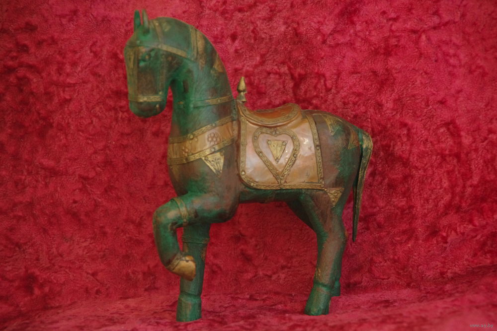 Статуэтка " Лошадь " из дерева и латуни ( восточная работа ) высота 21 см , длинна 17 см
