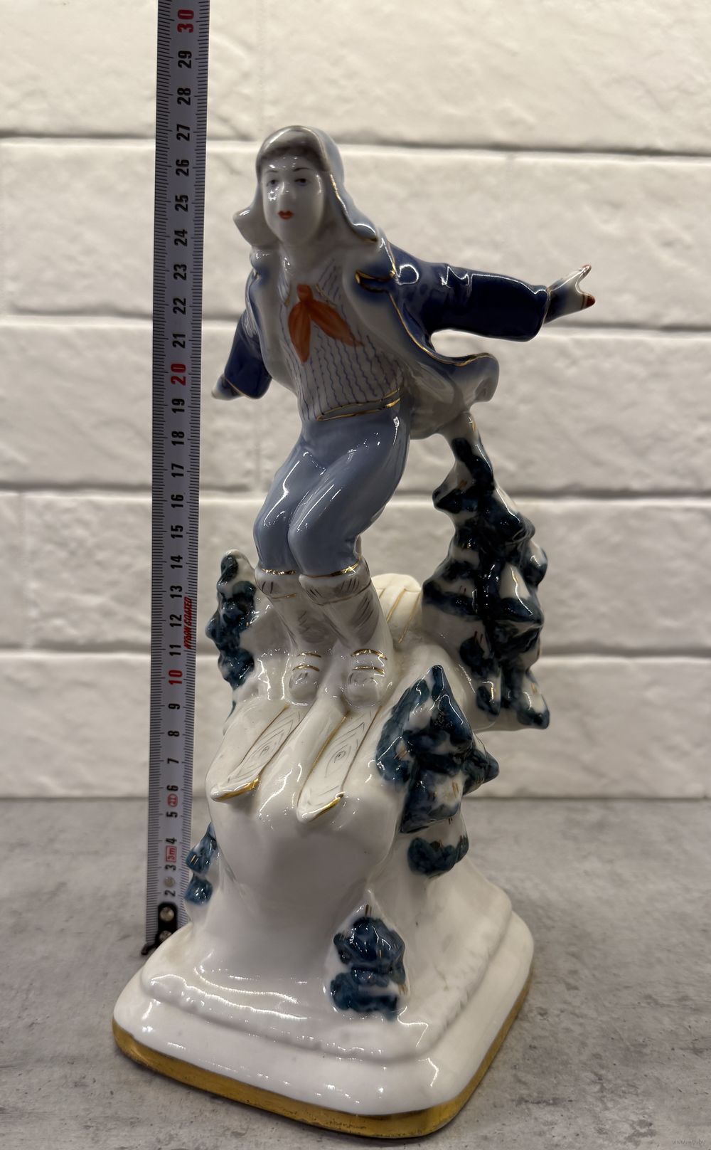 Статуэтка ЛЫЖНИК НА СКЛОНЕ. Дмитровский ФЗ. Вербилки. 1950 годы. ск С. Орлов РЕДКОСТЬ!! В ЛЮКСЕ. Распродажа коллекции!!!