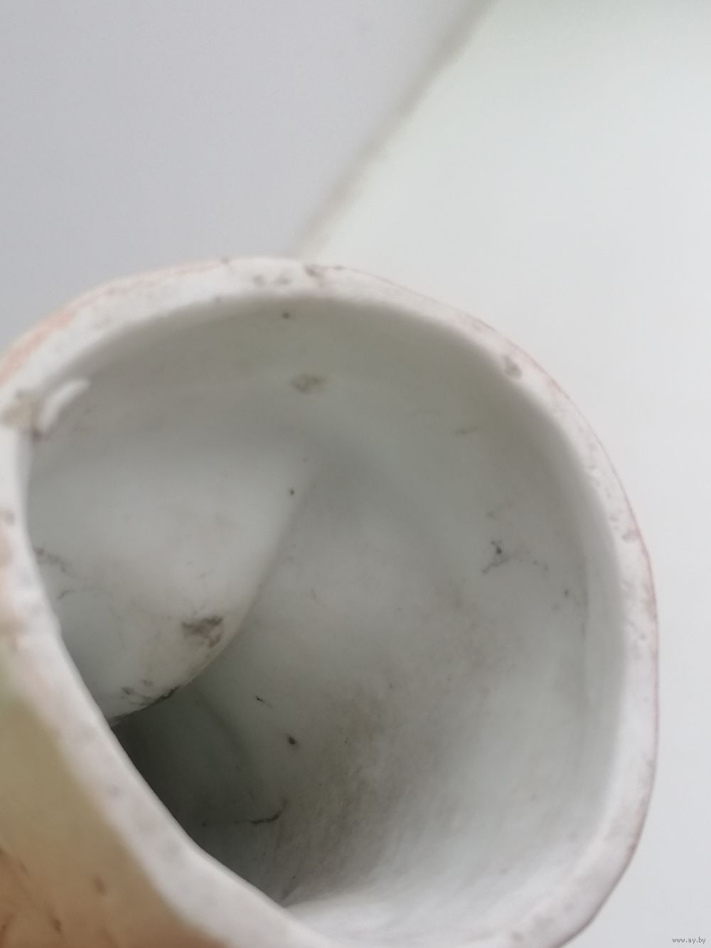 Состояние на фото. Трещин нет. Есть печные нюансы. На острие шапки спереди, скорее всего не скольчик - показал на фото. Цвет массы не нарушен. Возможно, так задумано.