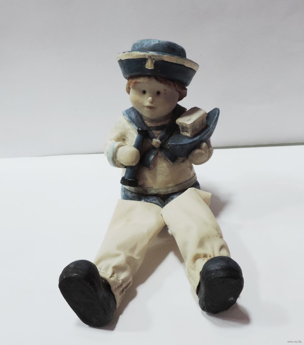 Статуэтка "Мальчик морячок с корабликом и трубой" Европа. Высота 19 см. Пластик.