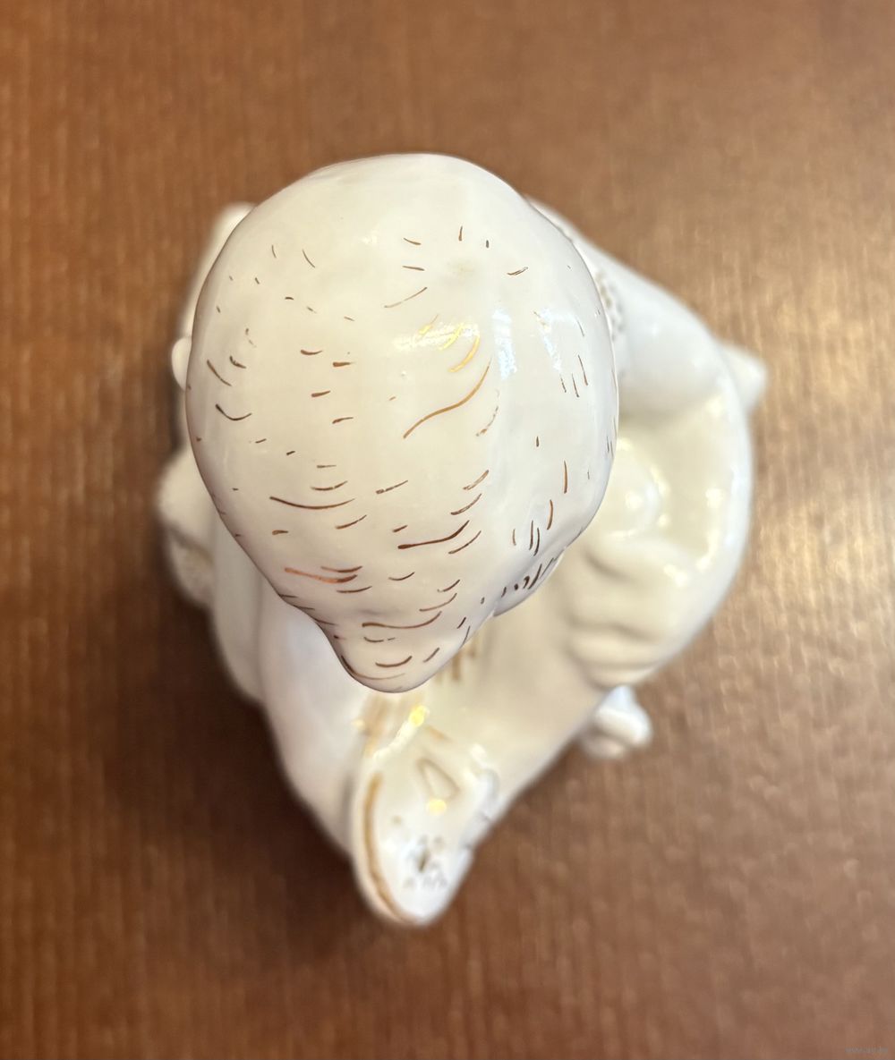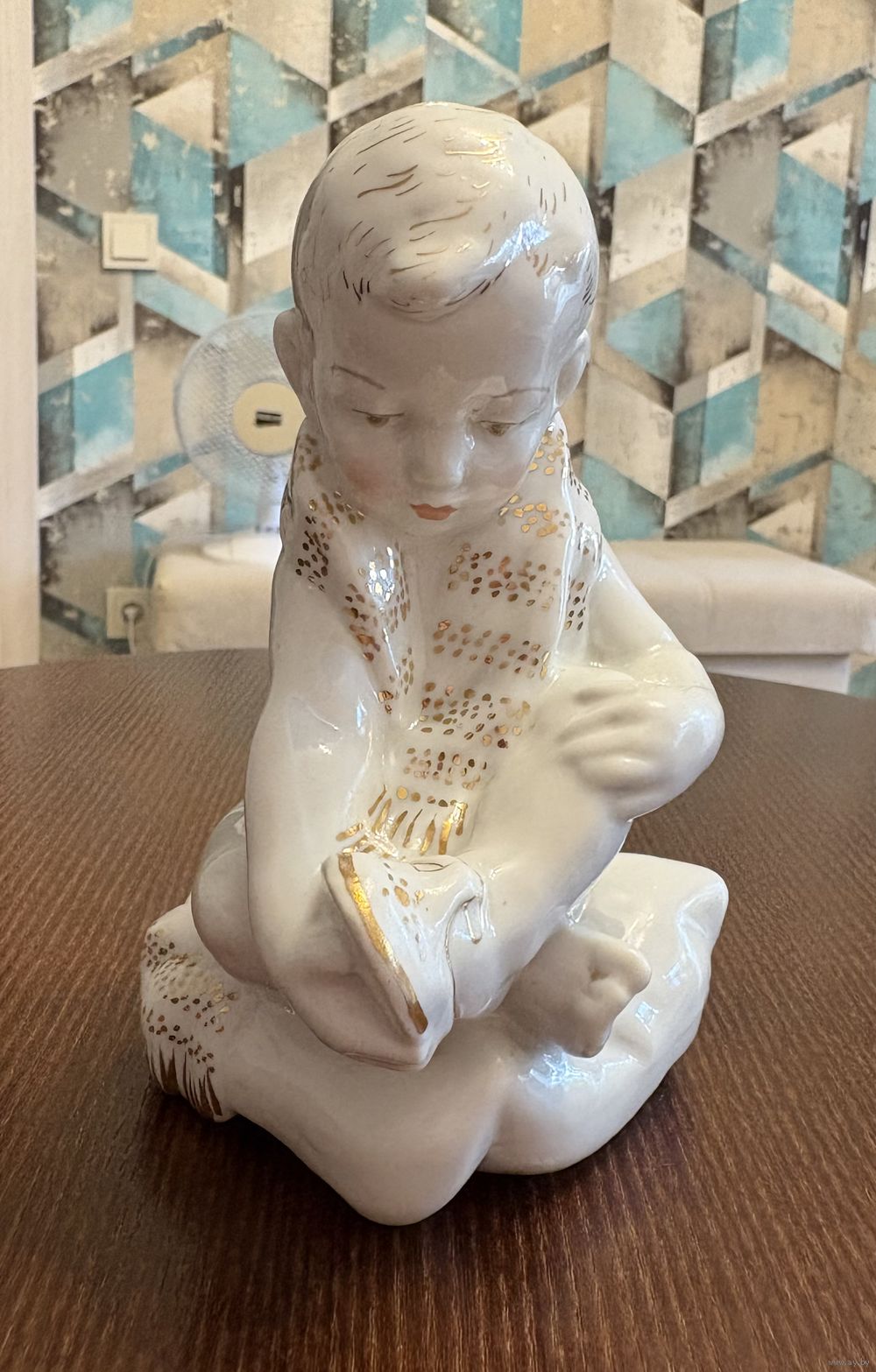 Статуэтка Мальчик одевает сандали . Песочное . Высота 15 см .