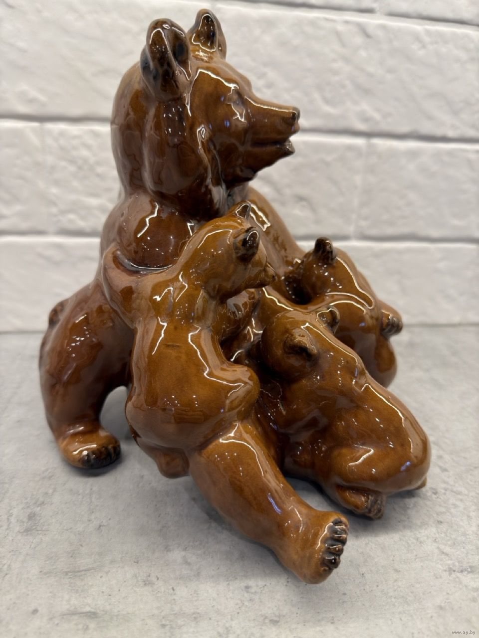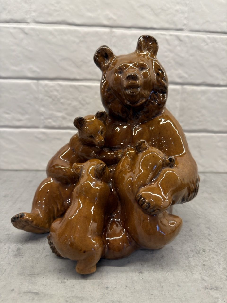 Статуэтка МЕДВЕДИЦА С МЕДВЕЖАТАМИ. Старая Гжель 1950 тые годы. Большая. Редкость!. Распродажа коллекции!!!