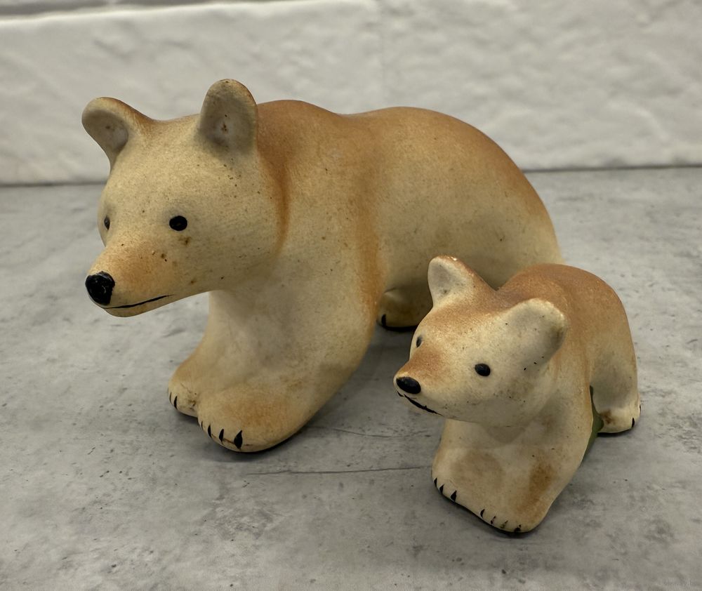 Статуэтка МЕДВЕДИЦА С МЕДВЕЖОНКОМ. Турыгино. 1960 годов. СССР. Старая гжель. Распродажа коллекции!!!