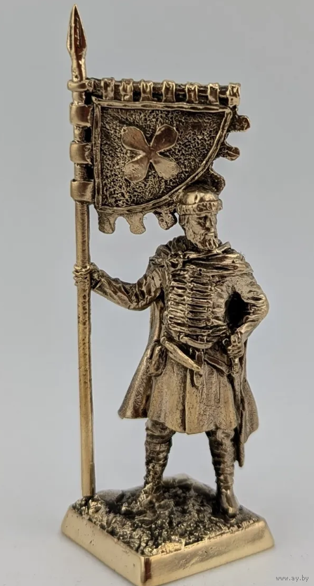 Статуэтка миниатюра Дружинник с флагом Бронза