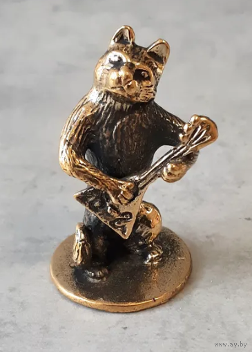 Статуэтка миниатюра Кот с балалайкой Бронза