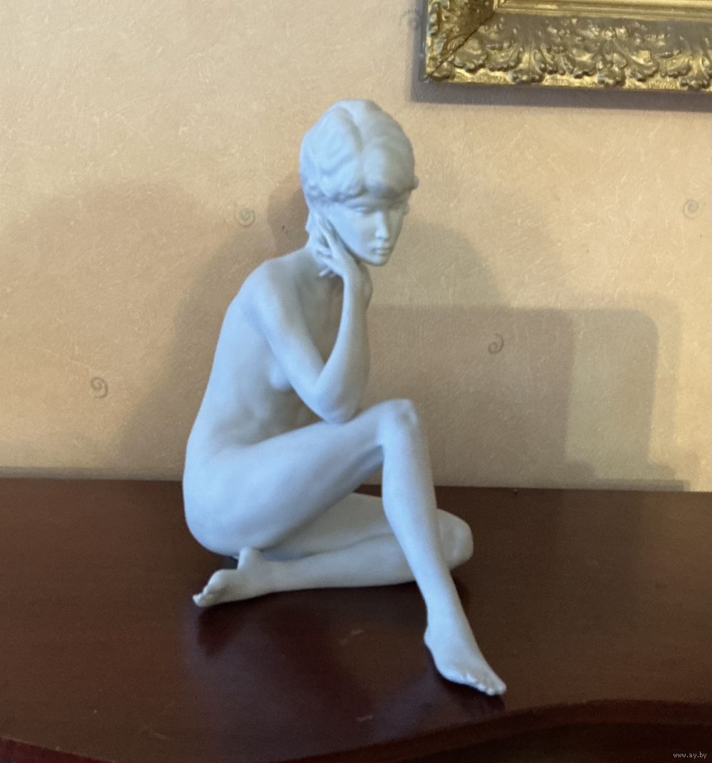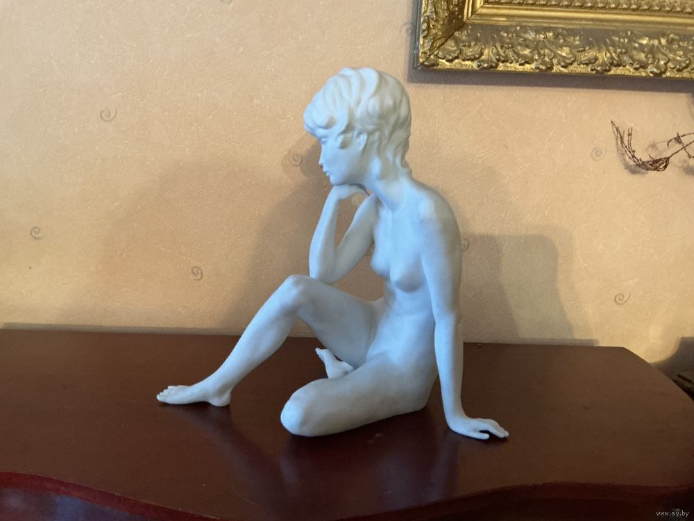 Шикарная старинная статуэтка Обнаженная , высота 23 см , крупная , отличное состояние, все целое ,подпись мастера в тесте