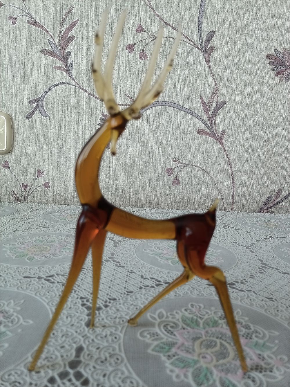 Изящная редкая статуэтка оленя. Высота до верха рогов 17 см. Длина по нижним ножкам 11 см. Витринное хранение. Из-за хрупкости лучше бы забрать по Минску