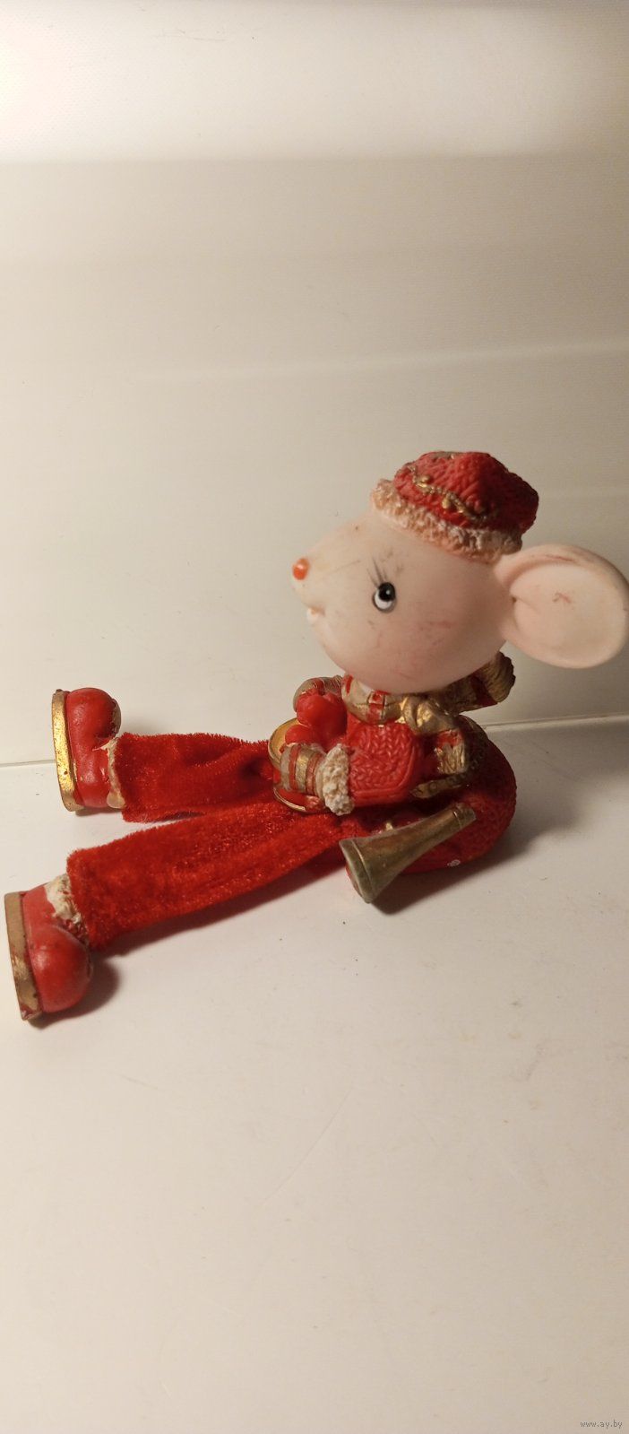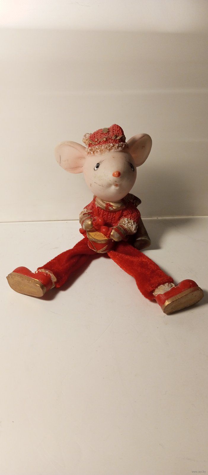 Прикольно сидит на краю комода. Полистоун (?) или керамика. Штаны тканевые.