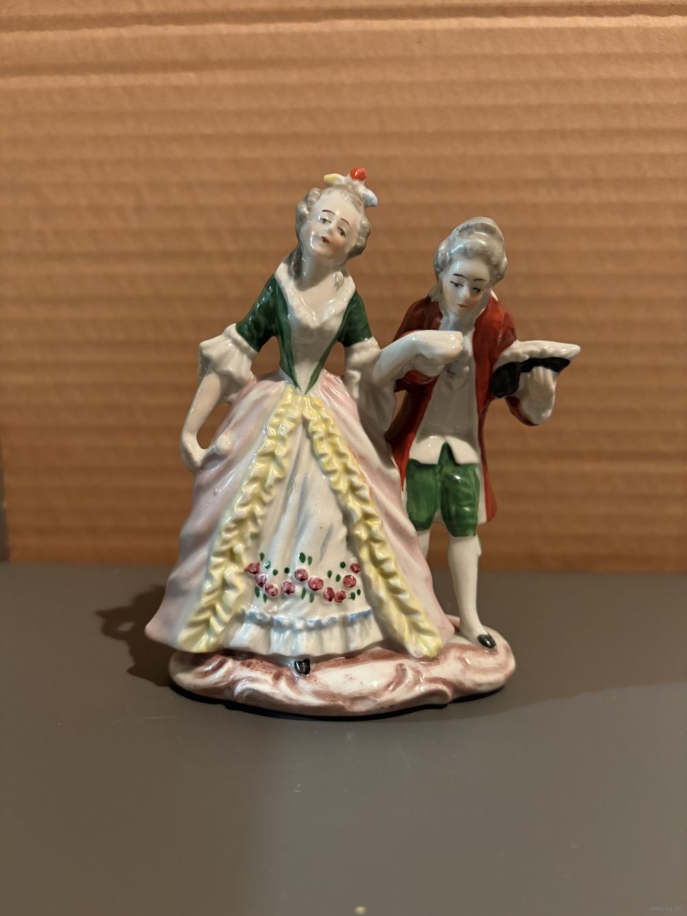 Красивая старинная статуэтка, высота 12 см , ручная роспись, хорошее состояние, потерь не нашла , редкая фирма , старое клеймо, дешевая цена !
