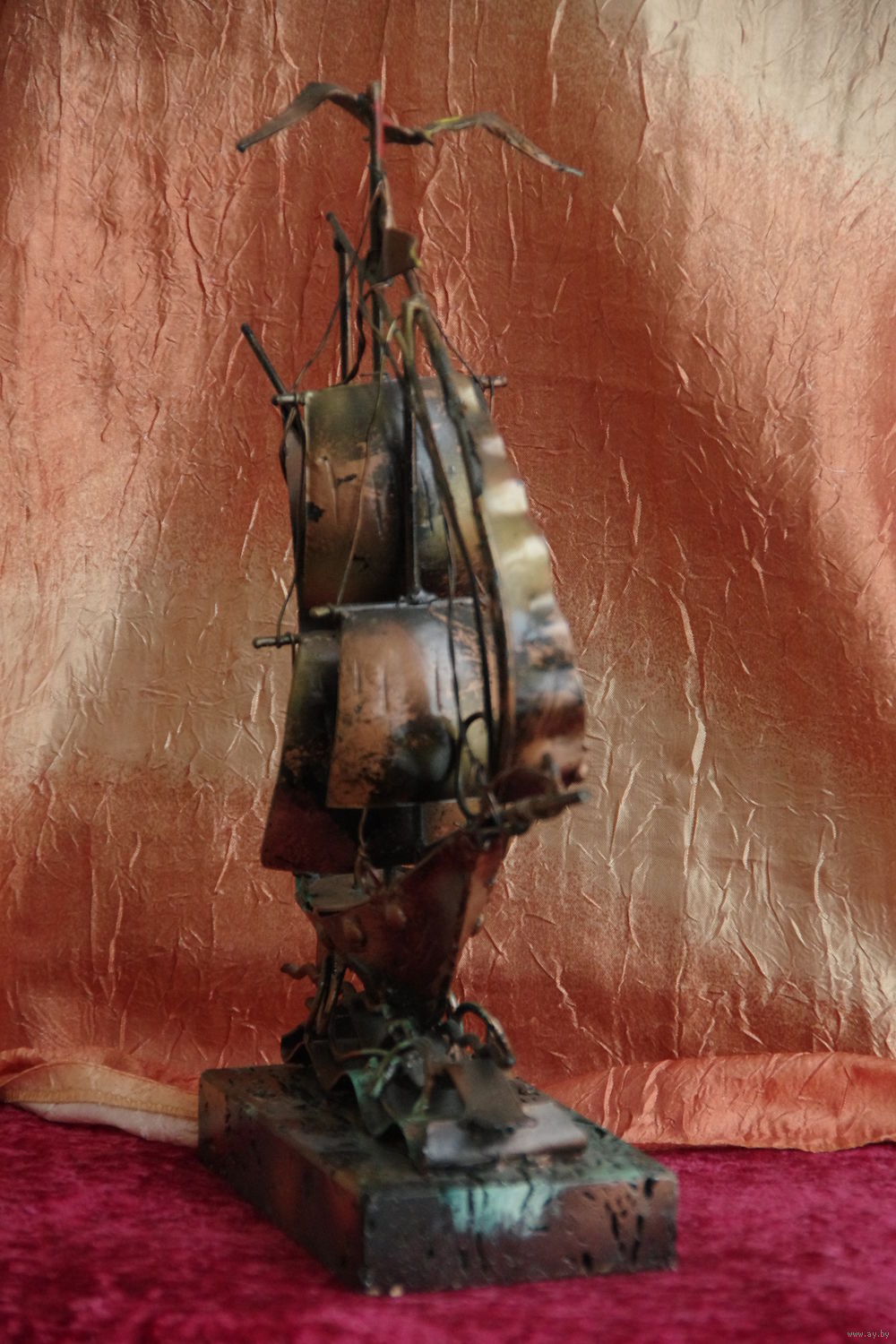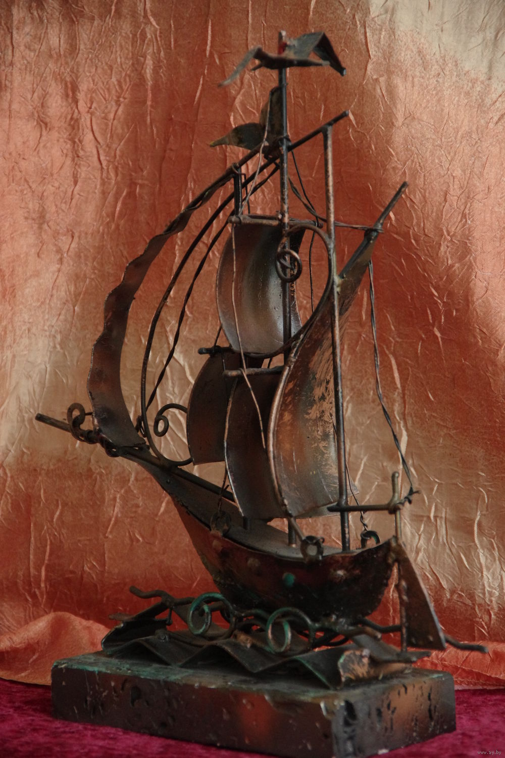 Статуэтка " Парусник " ( металл ) высота 34,5 см , ширина 28 см ( целая )