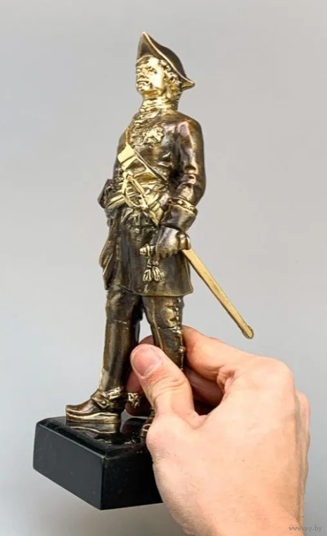 Высота около 24 см. Вес около 1,35 кг. Подставка из змеевика. Отличная детализация.