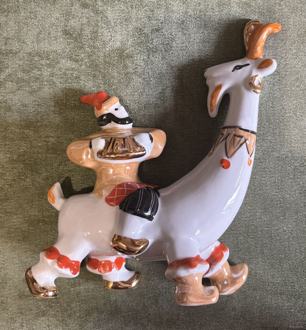 Статуэтка Скоморох на козе . Дулёво .