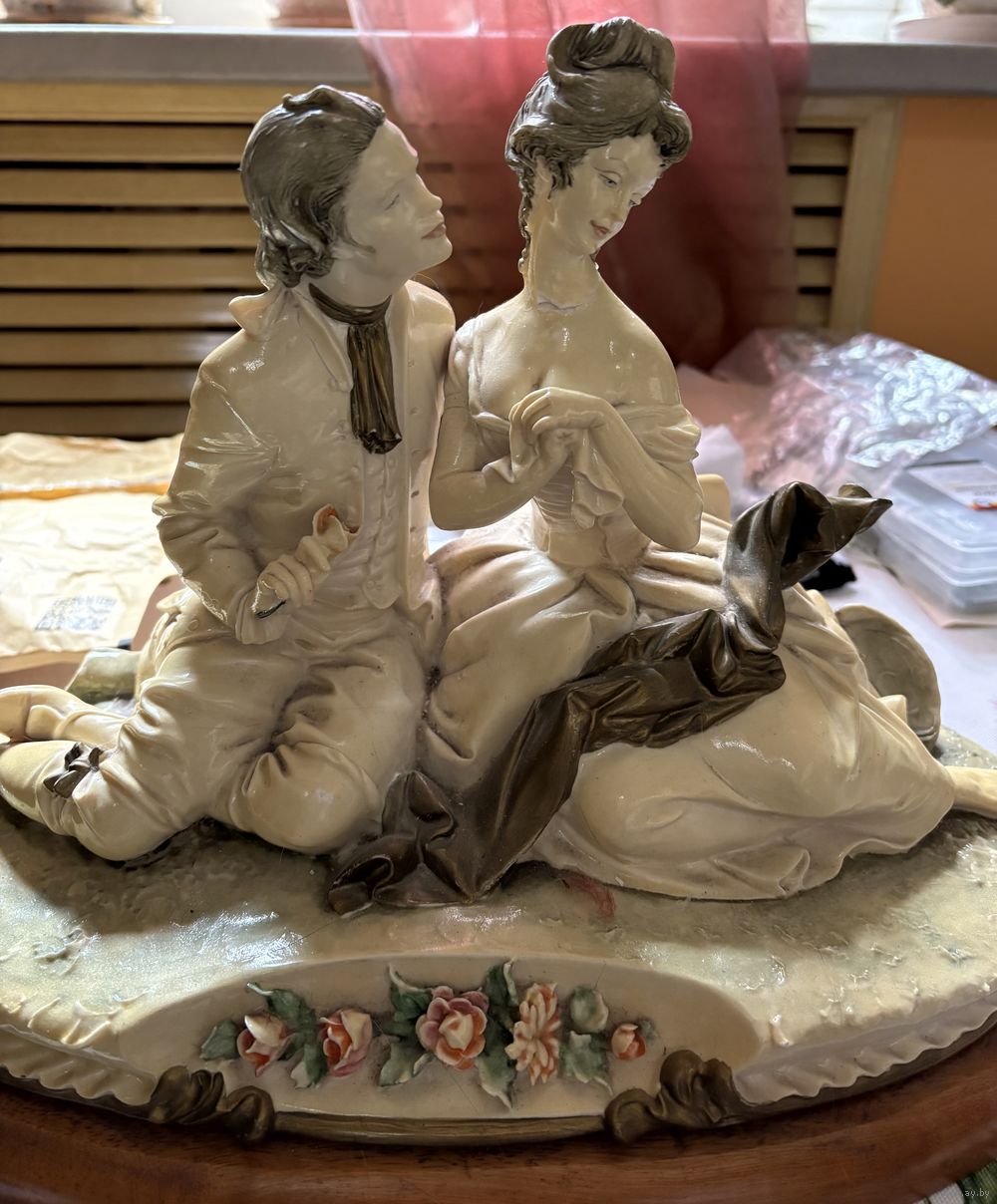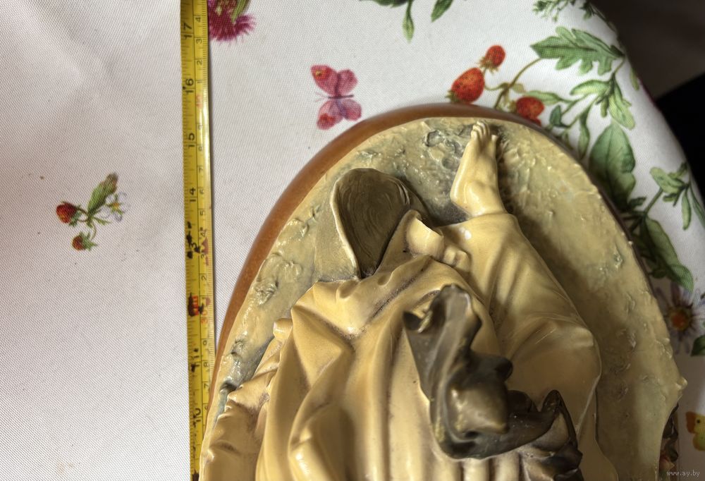 Очень большая статуэтка 26 см х 40 см , склейка головы , в реставрацию, не фарфор , очень тяжелая , подпись автора , в интерьере смотрится супер !