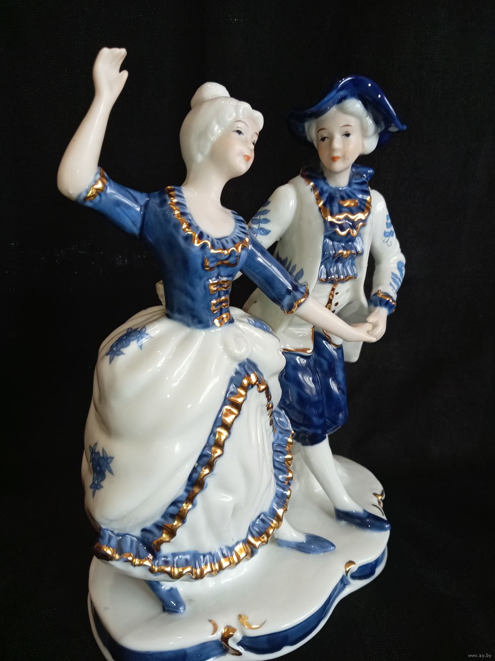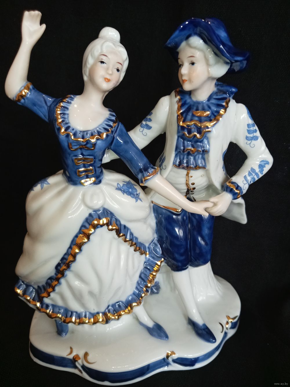 Винтажная статуэтка "ТАНЦУЮЩАЯ ПАРА". Фарфор, кобальт. Высота 22см. Длина 17см.Ширина 13см. Состояние хорошее, без сколов, трещин. Клеймо cdc.