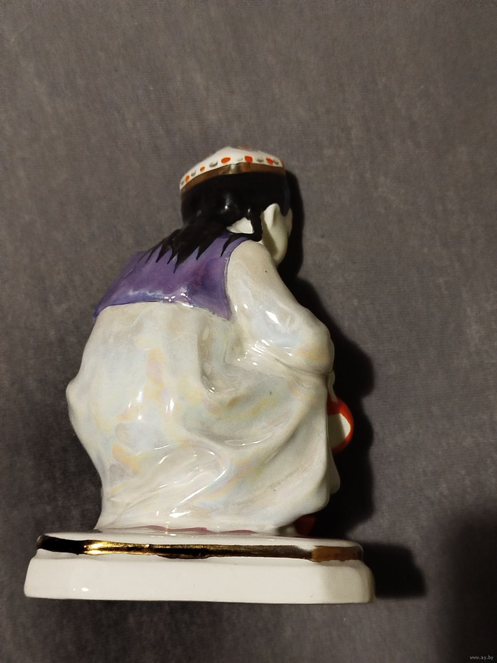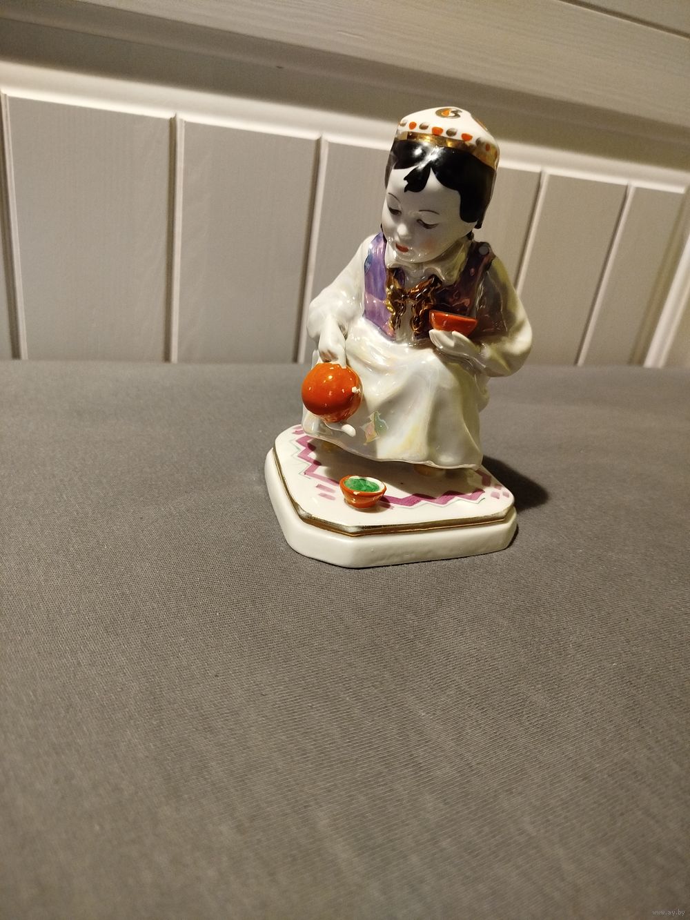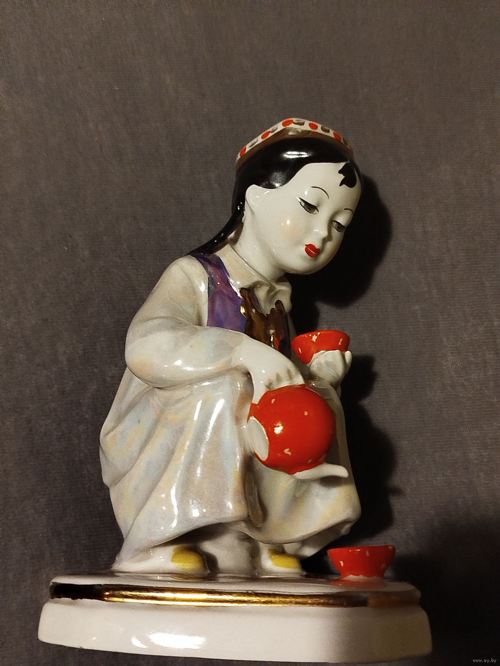 Фарфоровая статуэтка Узбечка с чайником СССР Дулево 1960 год. Состояние хорошее за исключением одного небольшого дефекта, отколот локон волос (крупным планом на последнем фото)