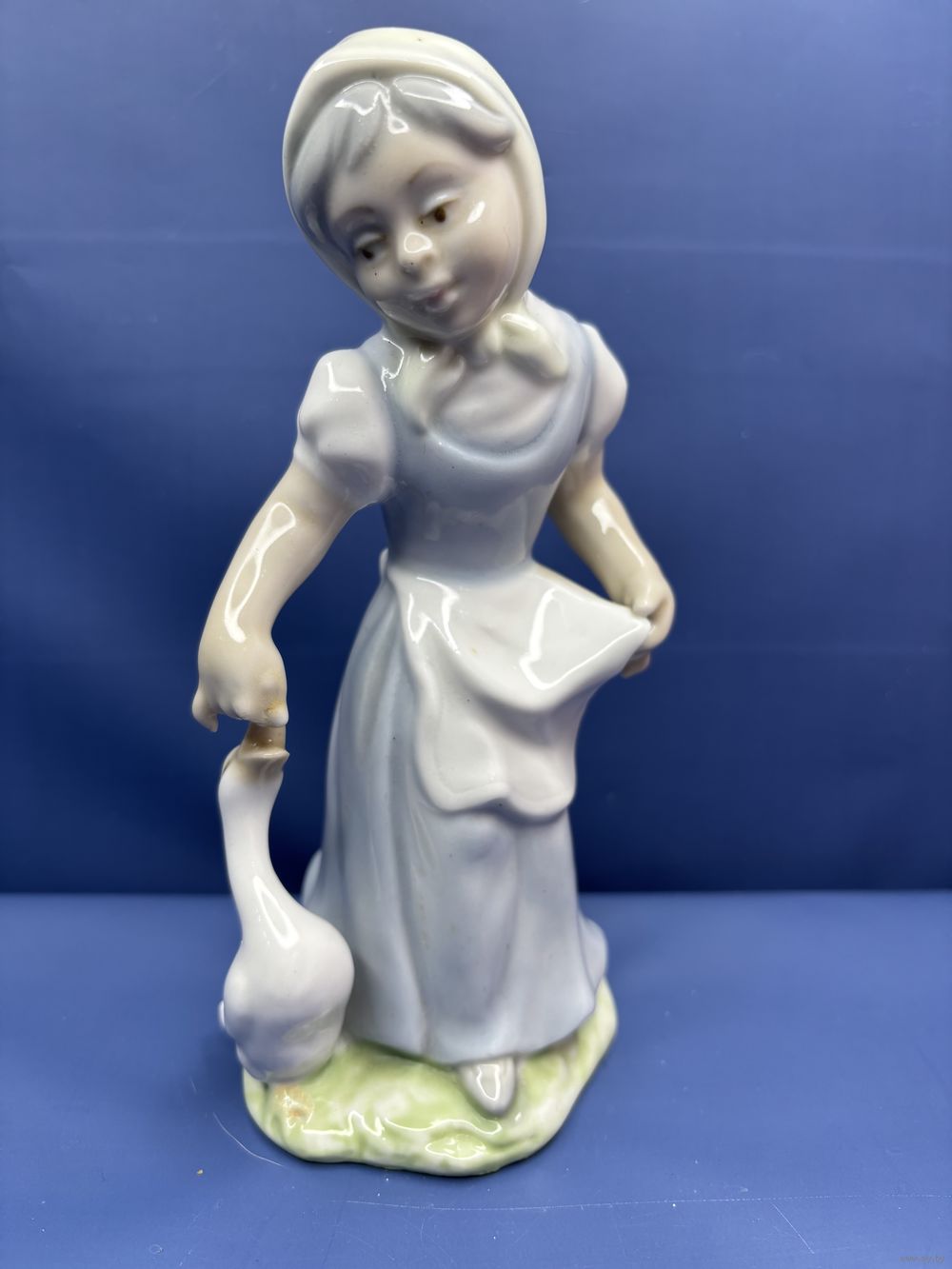 Статуэтка винтажная Девочка кормит гуся, фарфор, роспись, Испания, 1970-1990 гг.