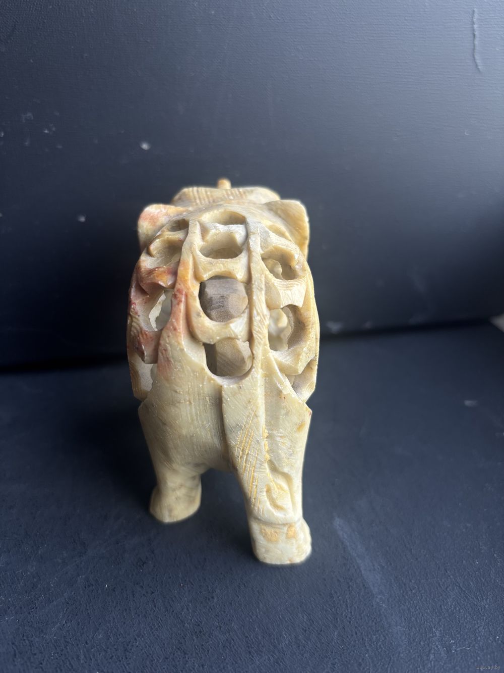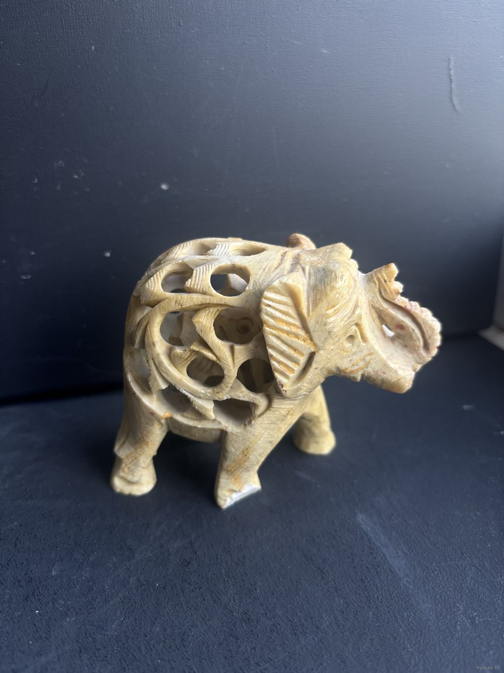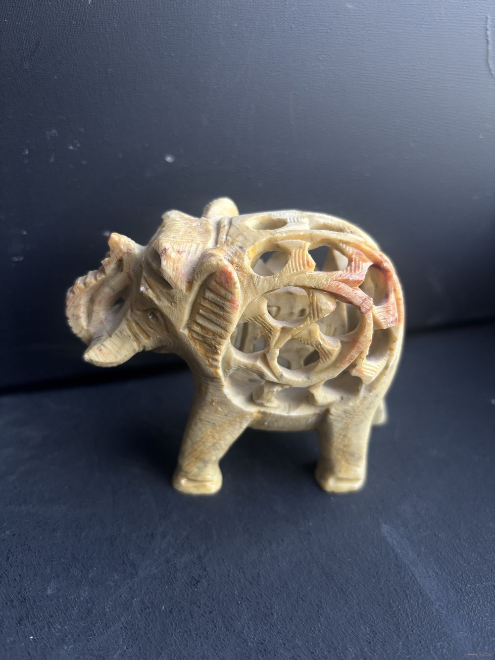 Статуэтка винтажная Слон со слоненком внутри, натуральный камень, резьба, Азия, 1980-1990