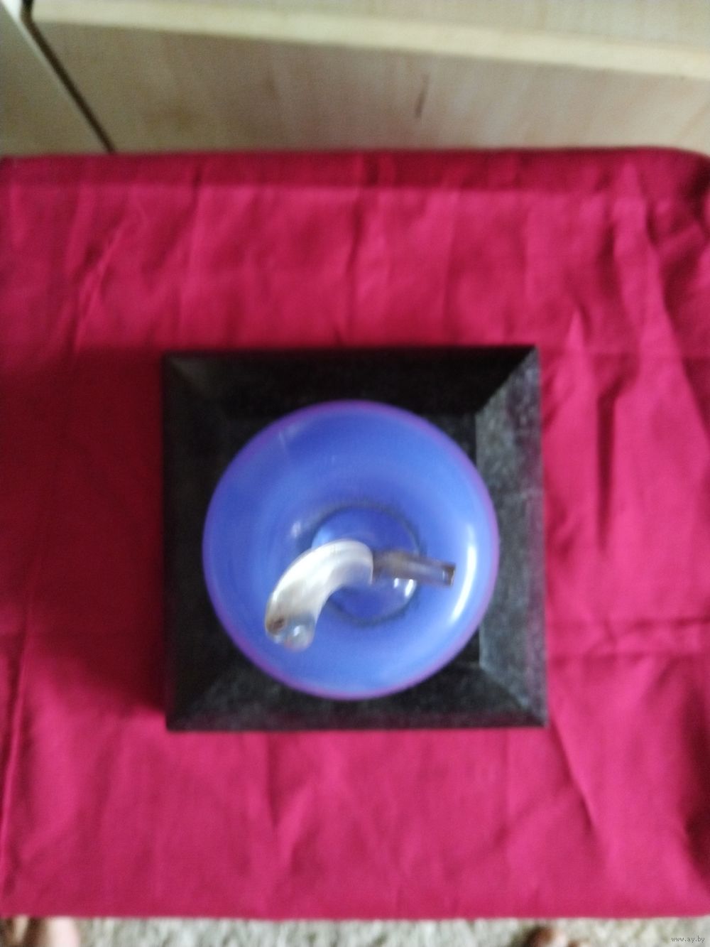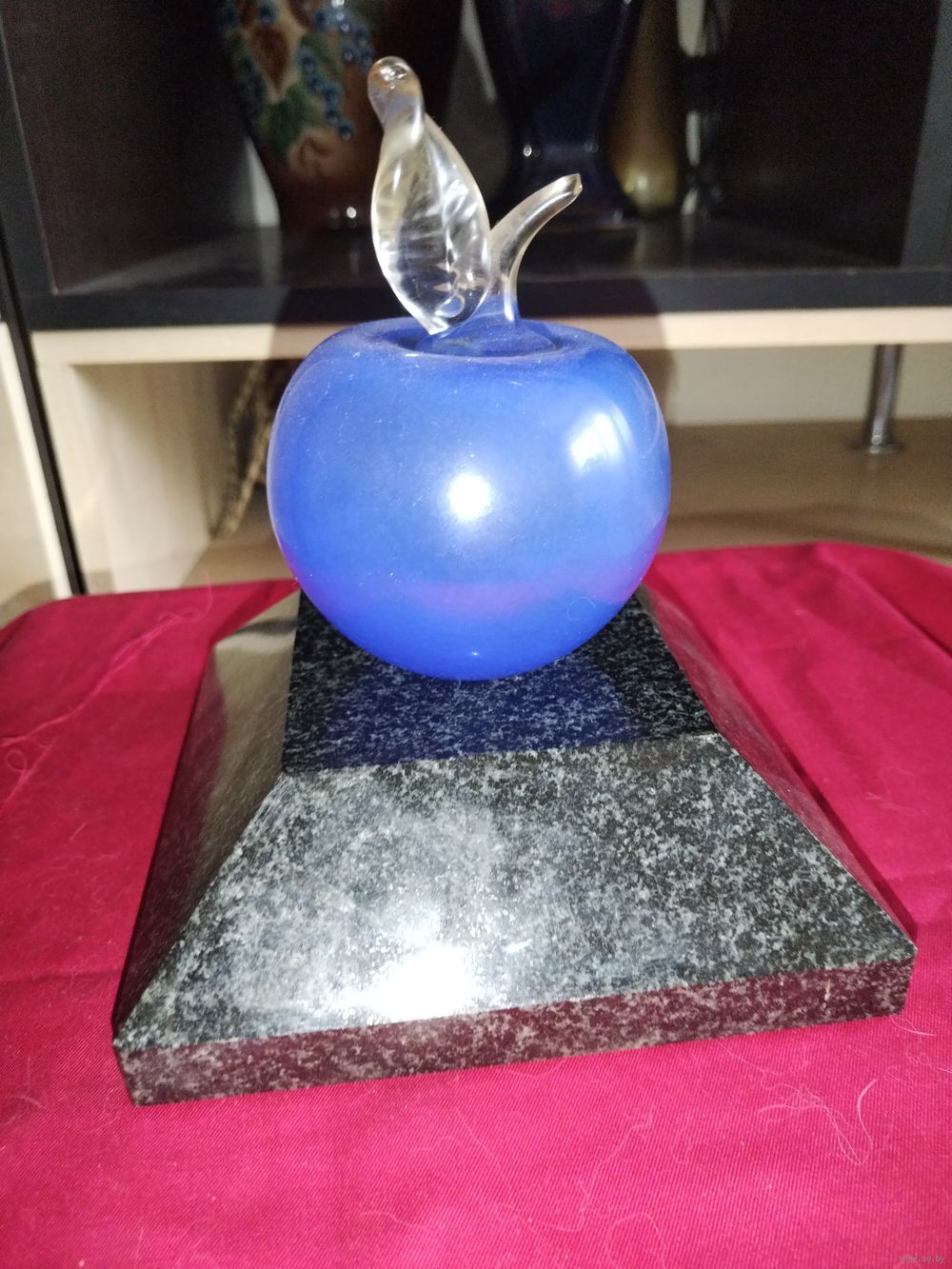 Статуэтка яблоко, цветное стекло, на подставке из натурального камня габбро.