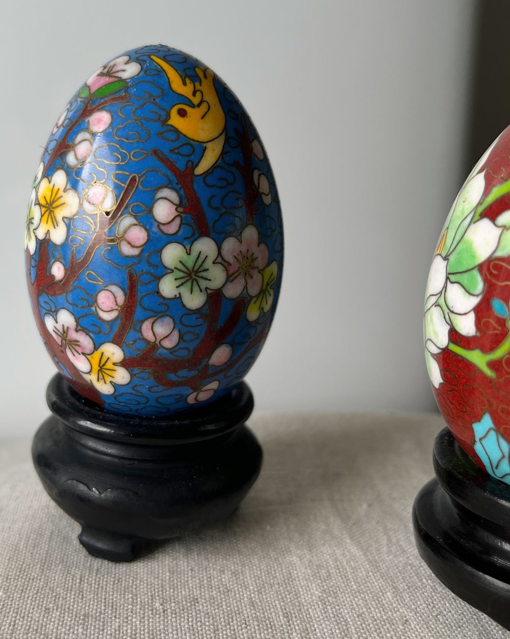 Статуэтка Яйцо Клуазоне клуазонне Перегородчатая эмаль с подставкой 6,5 х 4,5см