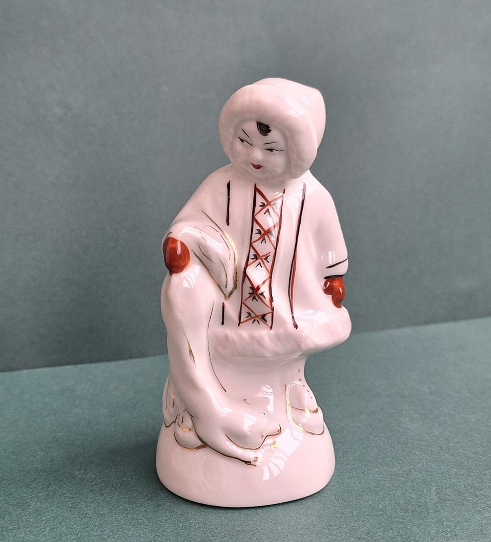Статуэтка "Якутка с песцом", Барановка. Высота: 11 см. Трещина от основания до рукавички. См. на фото 3.