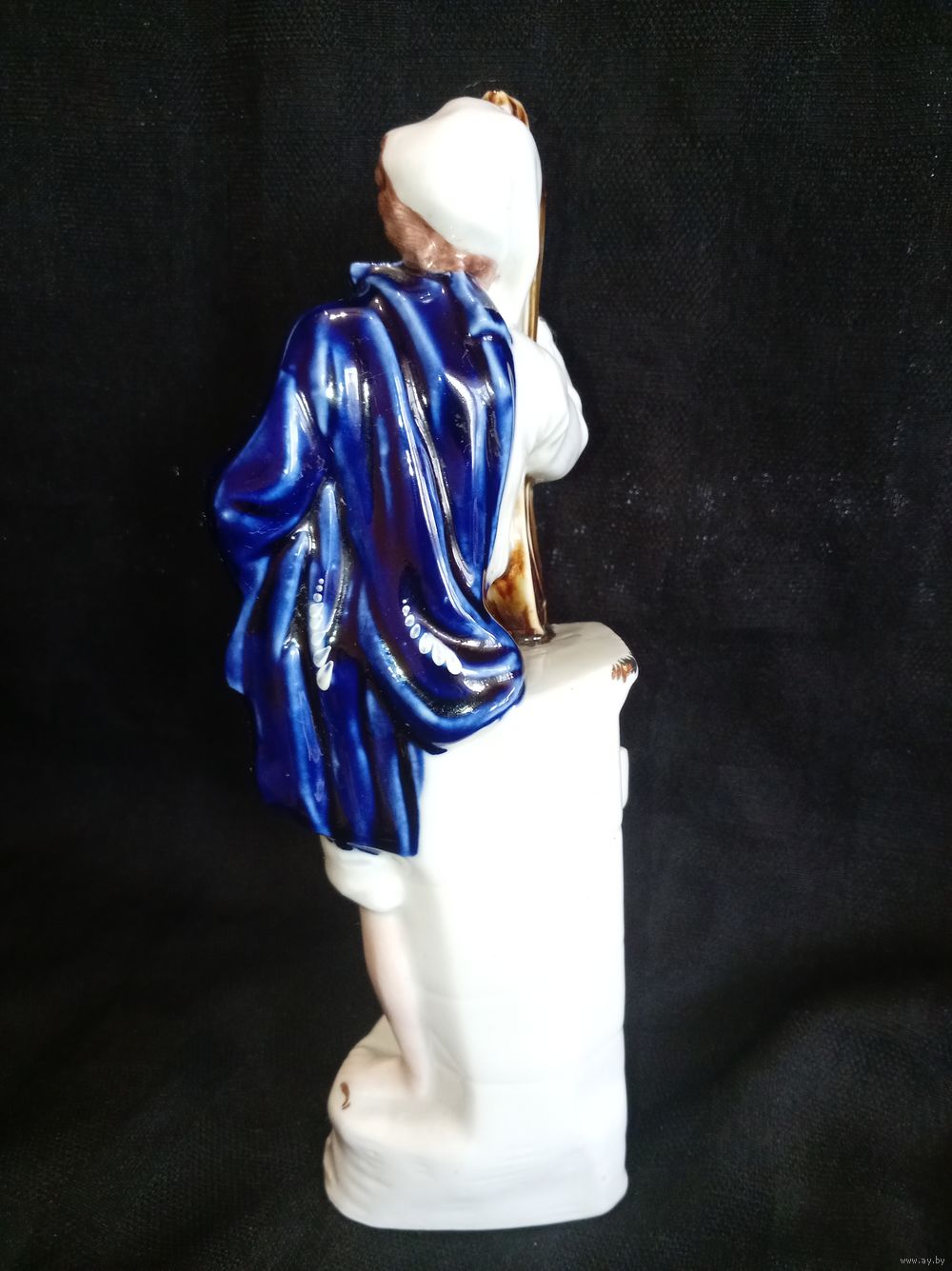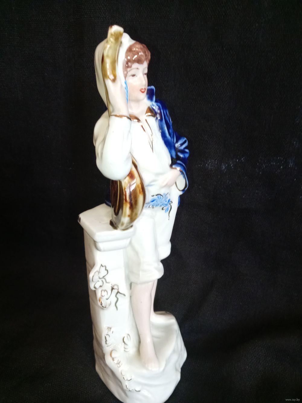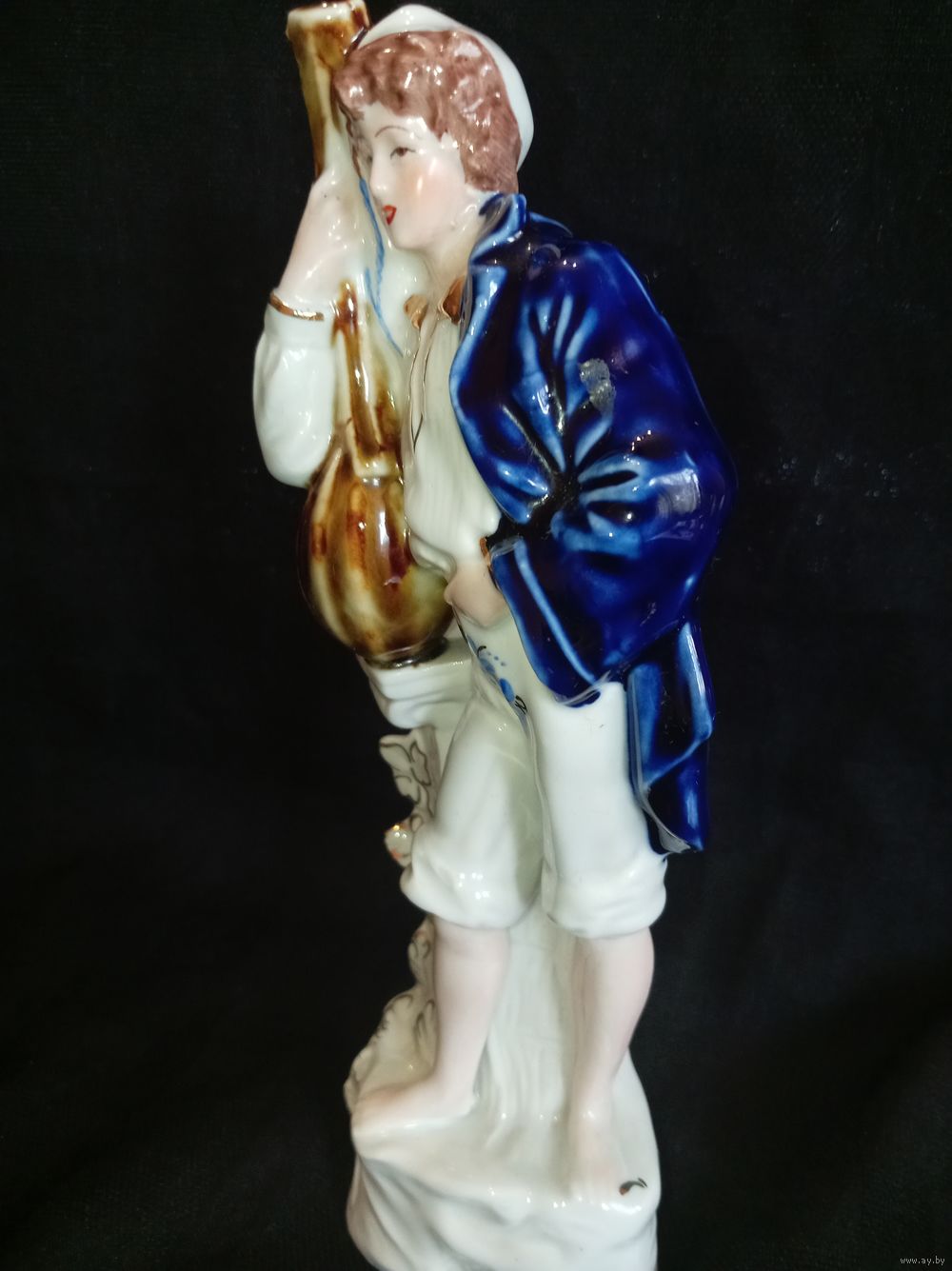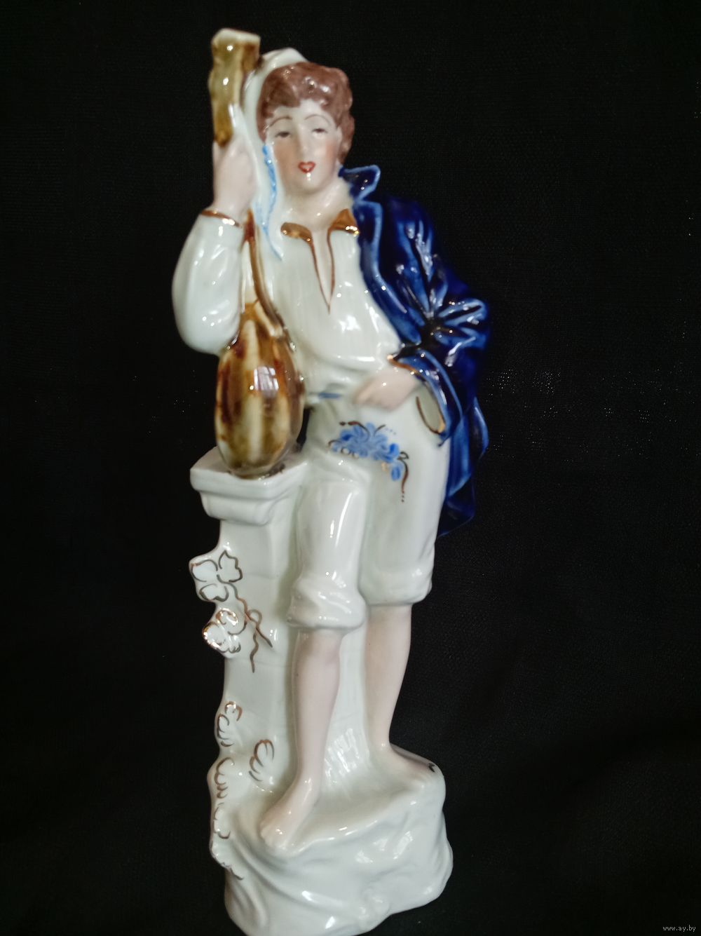 Статуэтка "Юноша с мандолиной". Польша, 60-е годы. Состояние хорошее, без сколов, трещин, реставраций. Высота 24см.