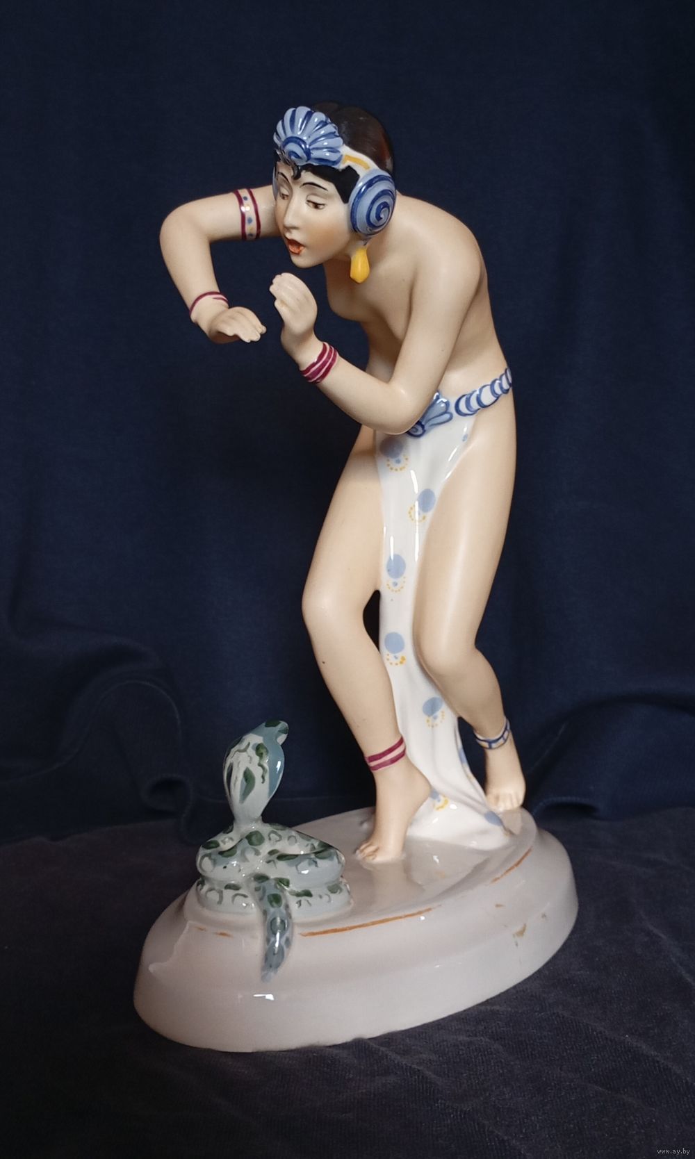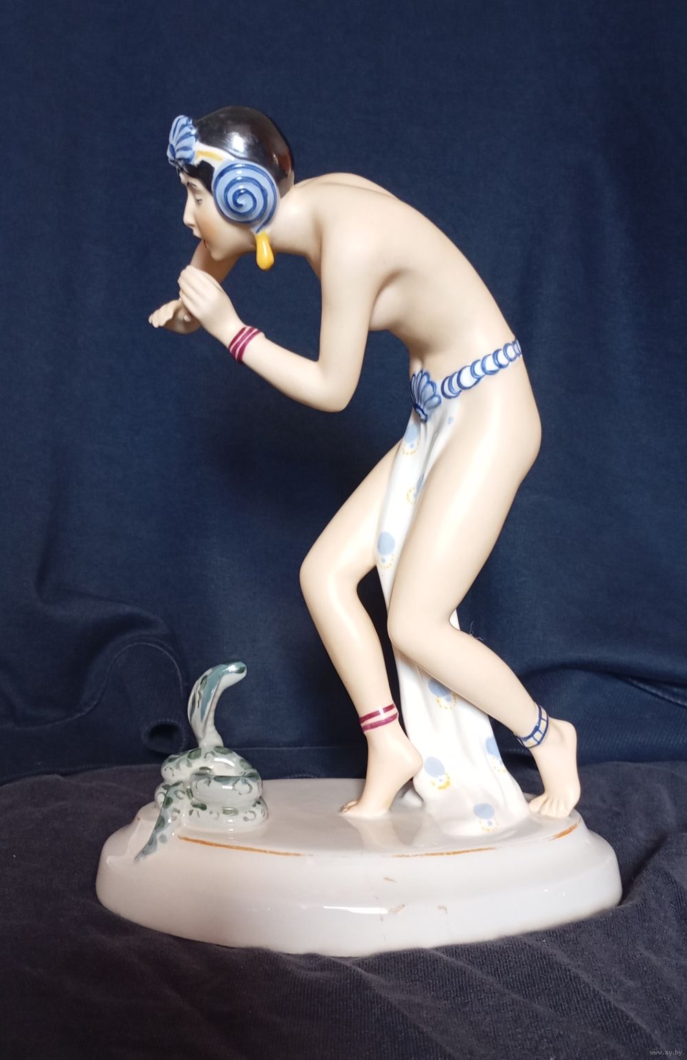 Фарфоровая статуэтка заклинательницы змей от Royal Dux, Чехословакия времен немецкой оккупации.