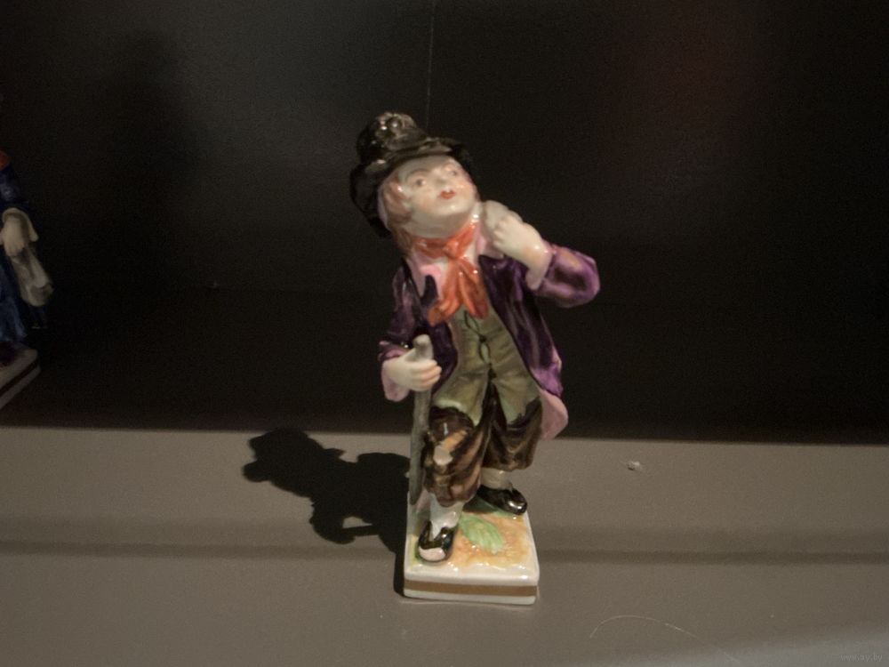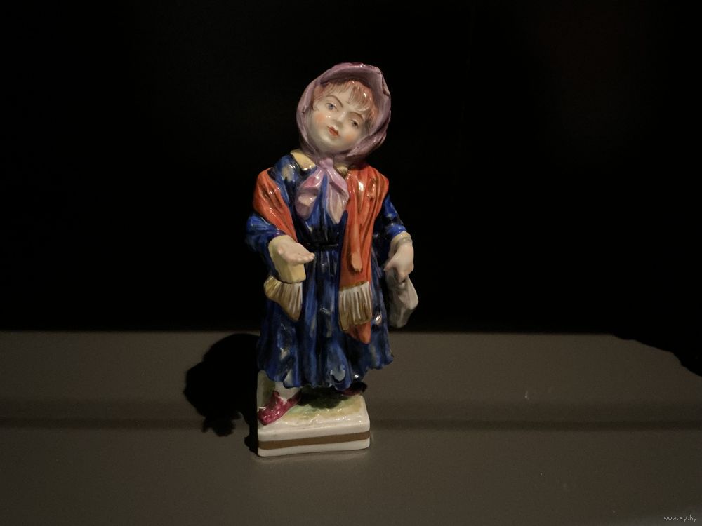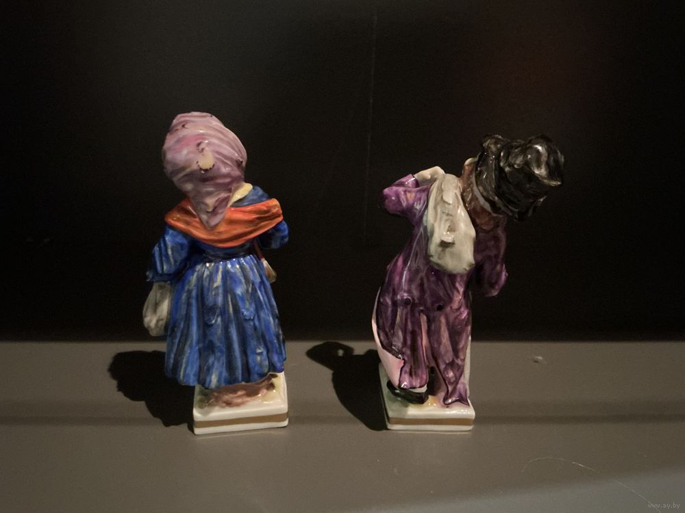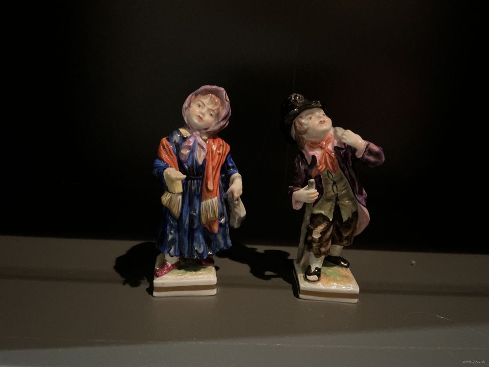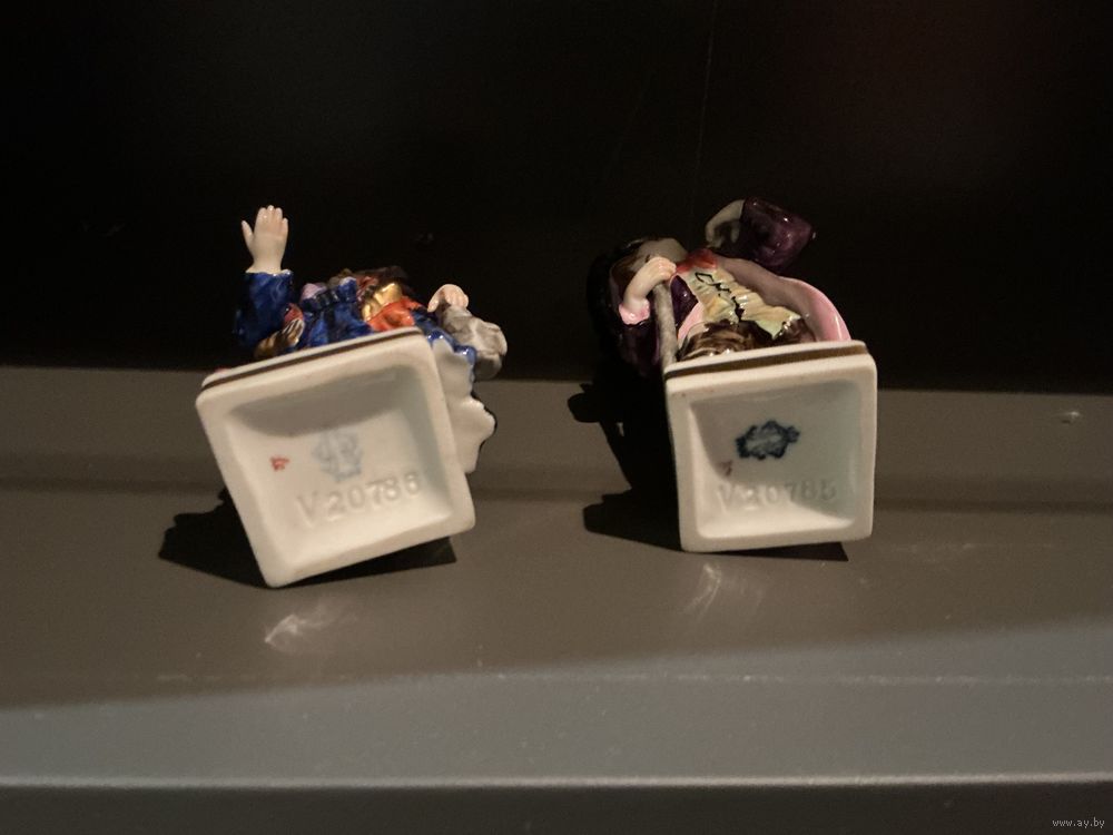 Старинная пара статуэток высота 11 см , ручная роспись , жанровая , клеймо и номер , без потерь