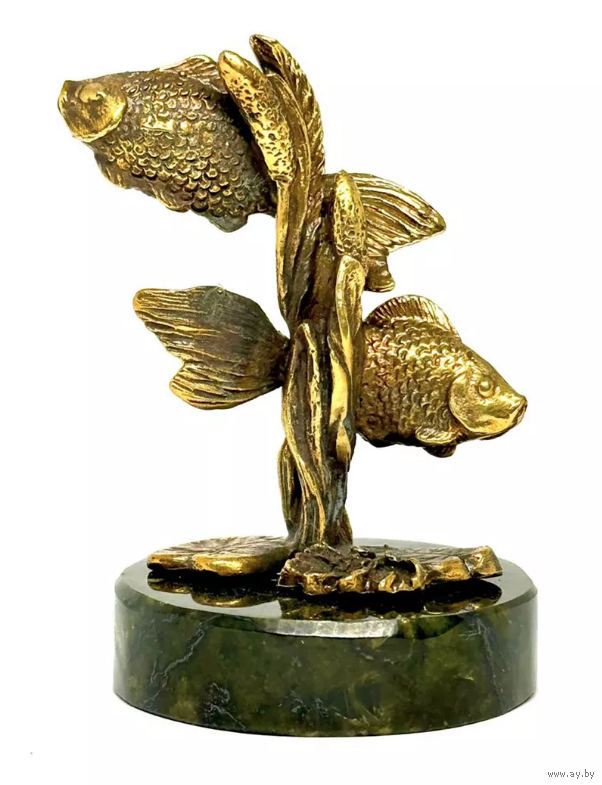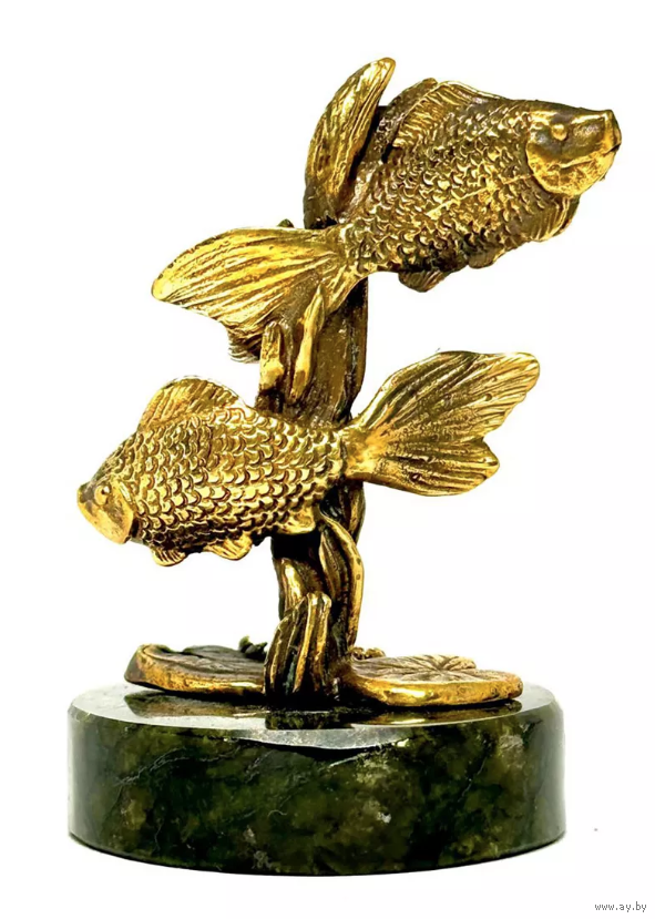Статуэтка Знак зодиака Близнецы из бронзы на подставке из змеевика.