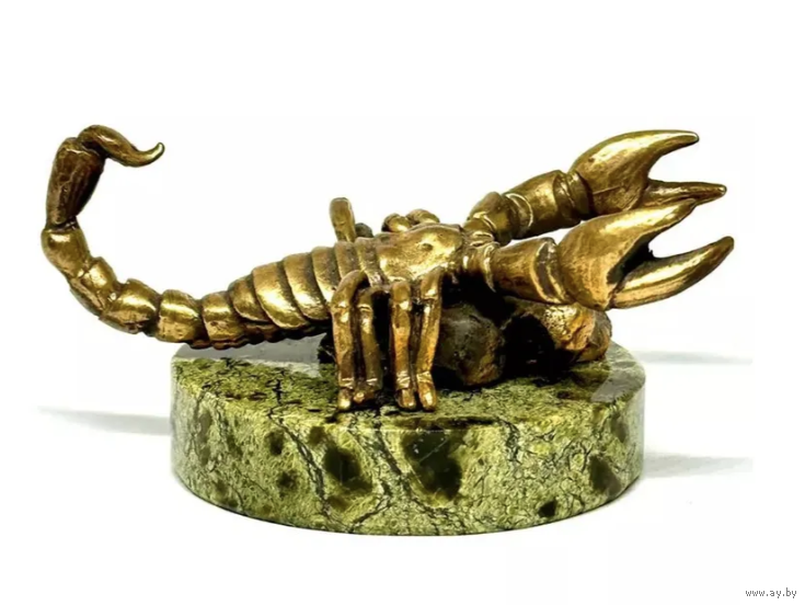 Статуэтка Знак зодиака Скорпион из бронзы на подставке из змеевика.