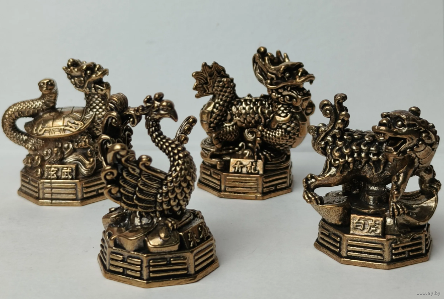 Высота около 4,5 см. Дракон, Феникс, Тигр, Черепаха.