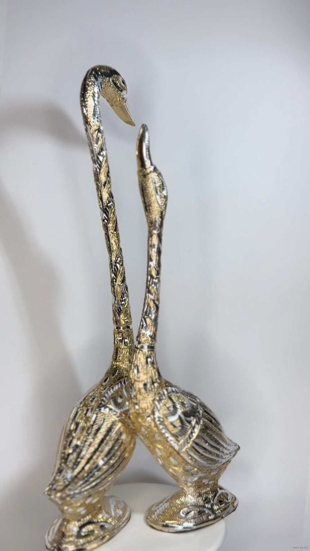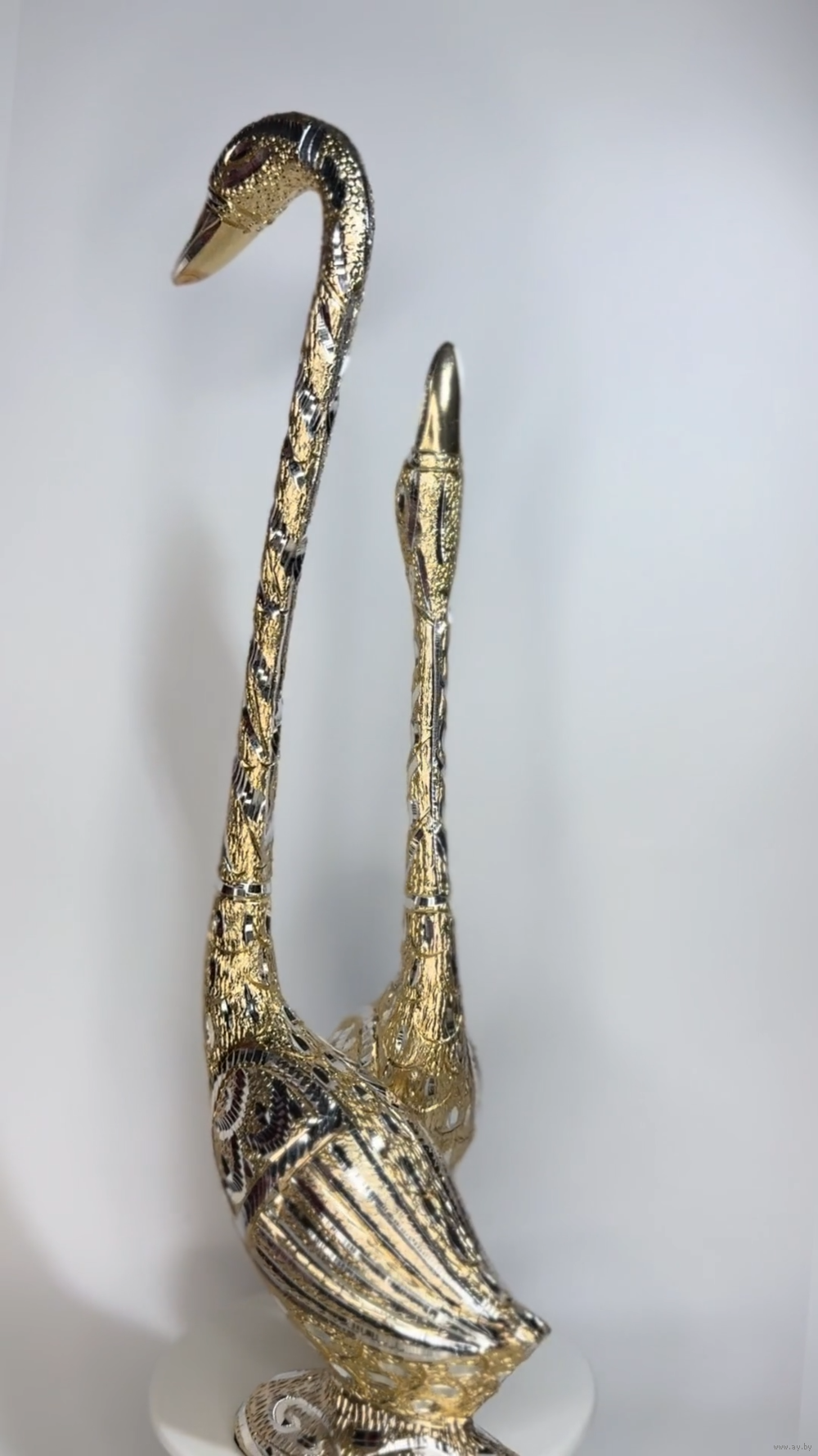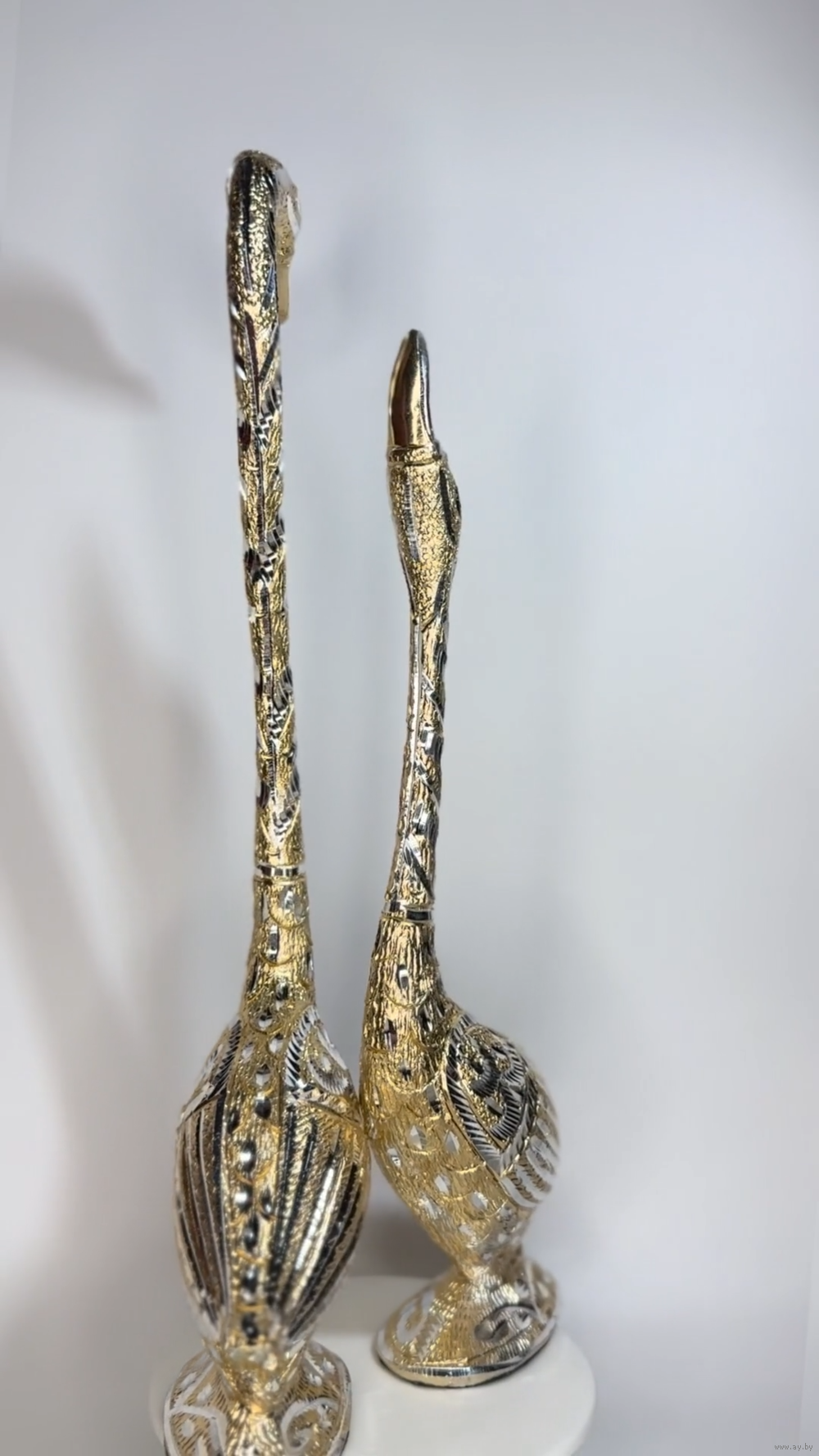 В наборе 2 лебедя высотой 37 см. и 32 см. Огранка. Металл возможно алюминий или сплав.
