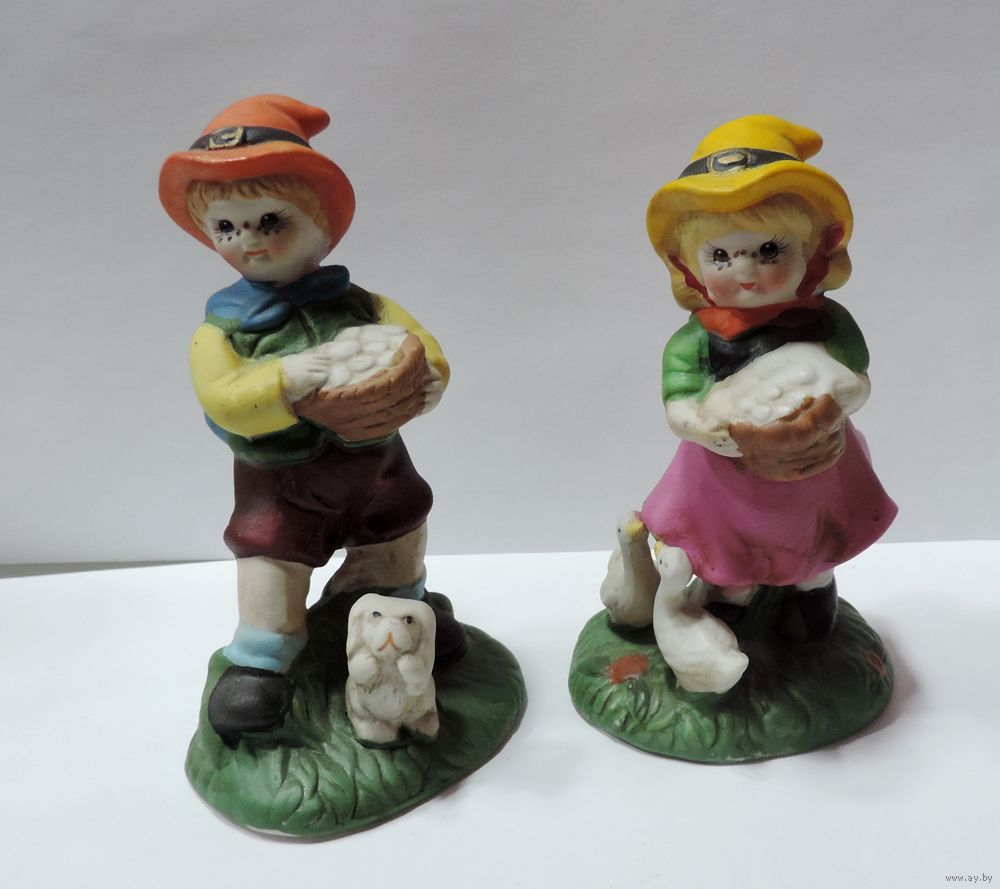 Статуэтки фарфоровые "Дети с корзинками" 80-е годы Европа. Высота 11.5 см.